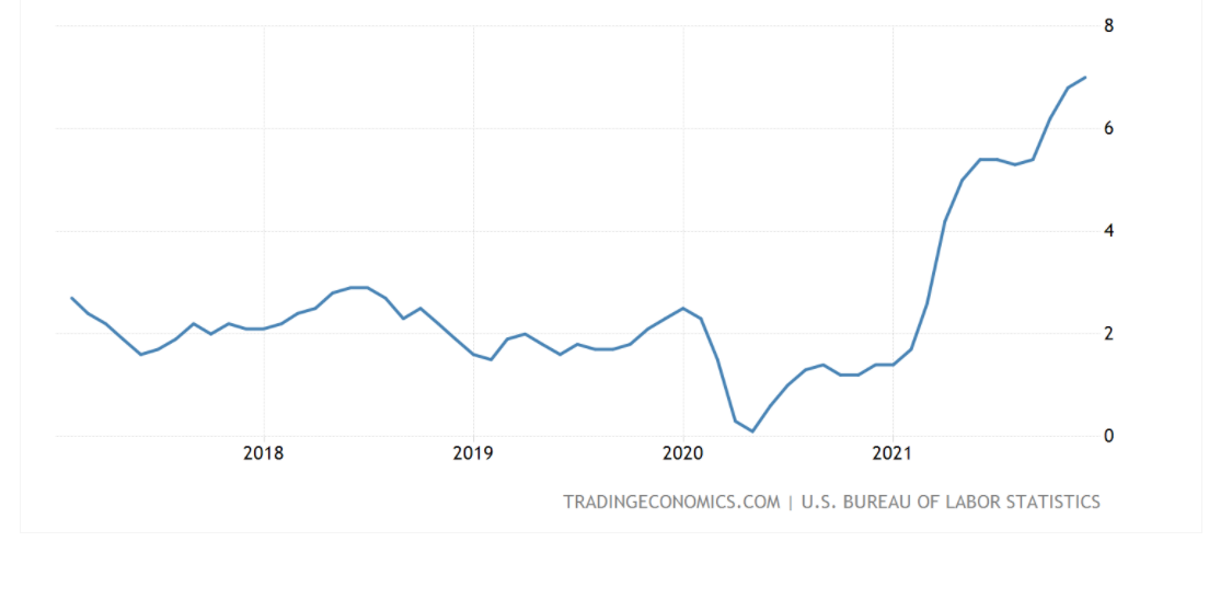 인플레이션의 시대다. 왼쪽은 미국, 오른쪽은 한국의 물가상승률이다. 미국은 7%, 한국은 4% 가까이 상승했다. 제품과 서비스 가격이 비싸진다. 임금, 물류비, 원자재 가격이 많이 올랐다.