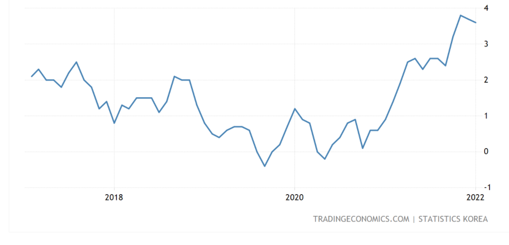 왼쪽 미국 물가상승률 / 오른쪽 한국 물가상승률
