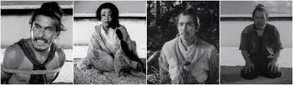 자기가 보고 싶은데로 믿고 싶은데로 증언하는 각자의 인물들. 악명 높다던 타죠 마루는 그의 비겁함을 여인은 그날의 진실을 남편은 사무라이로서의 구겨진 자존심을 나무꾼은 단도를 훔쳤다는 것을 각자 그들의 거짓 속에 숨기고 싶었던 것이었죠. 영화 중간 즈음을 보시다 보면 이미 그들이 보고 싶은 대로만 보고 있음을 암시하는 대사가 나옵니다. 타죠 마루는 여인을 '강한 여자'로 묘사했지만 스님과 나무꾼 눈에는 '연약한 여자'로 밖에 안보였다는 언급은 그들의 증언이 믿을만하지 못하다는 것을 보여주죠.