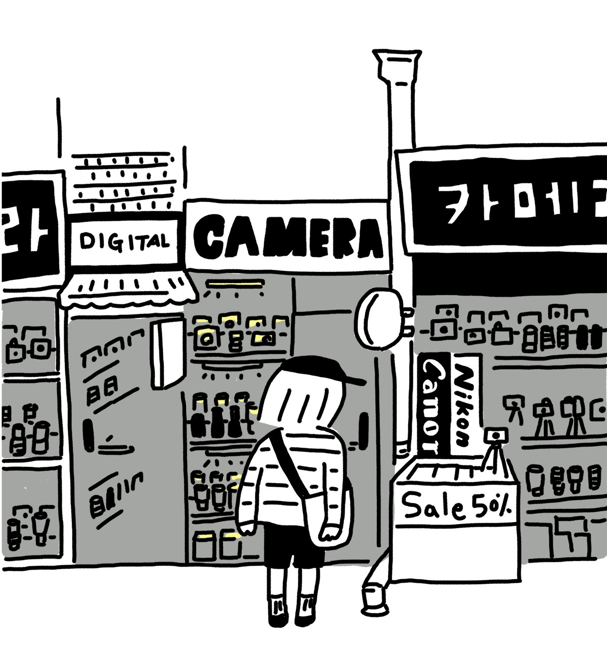 카메라를 판매하는 아저씨들은 속을 읽을 수 없는 얼굴을 하고 있다.