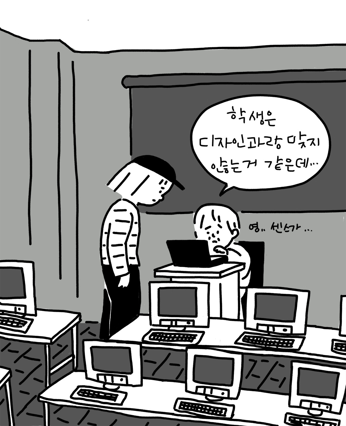편집 디자인 교수가 시무에게 말했다.