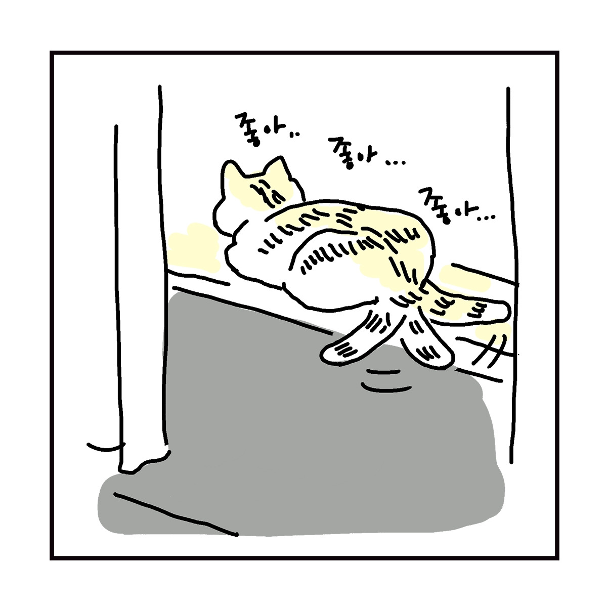 나베는 창 밖을 구경하는 장소 대신 최적의 낮잠 장소를 획득했다.