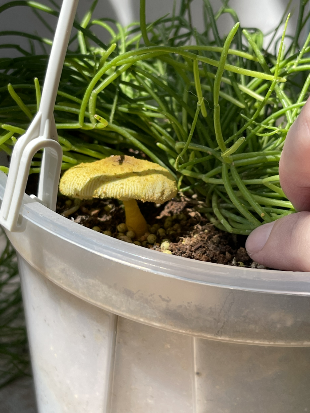 립살리스 폭스테일이라는 더벅머리총각처럼 머리채를 길게 늘어뜨리는 식물 사이에 노란 버섯이 피었다.