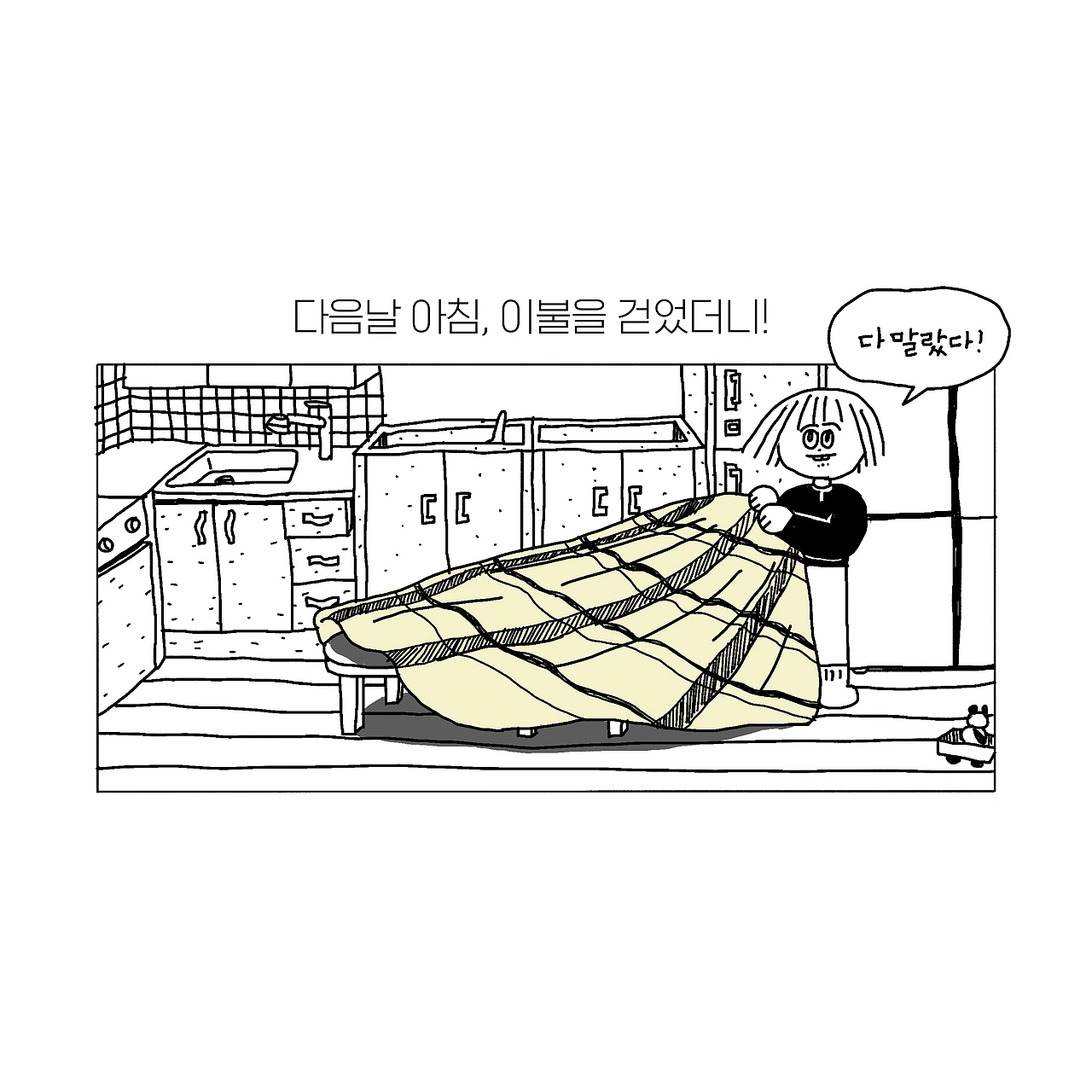 퀸 사이즈 이불은 베란다에 말리도록 하자