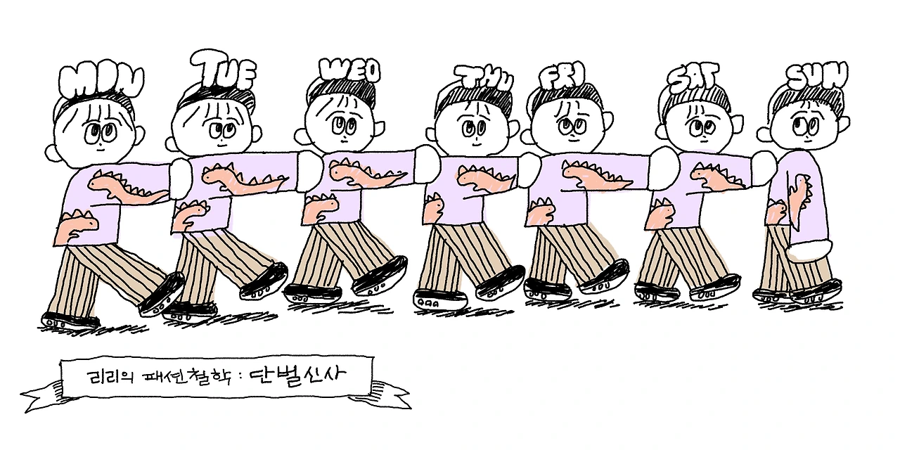 (같은 디자인, 다른 색인 옷이 5벌 있다)와