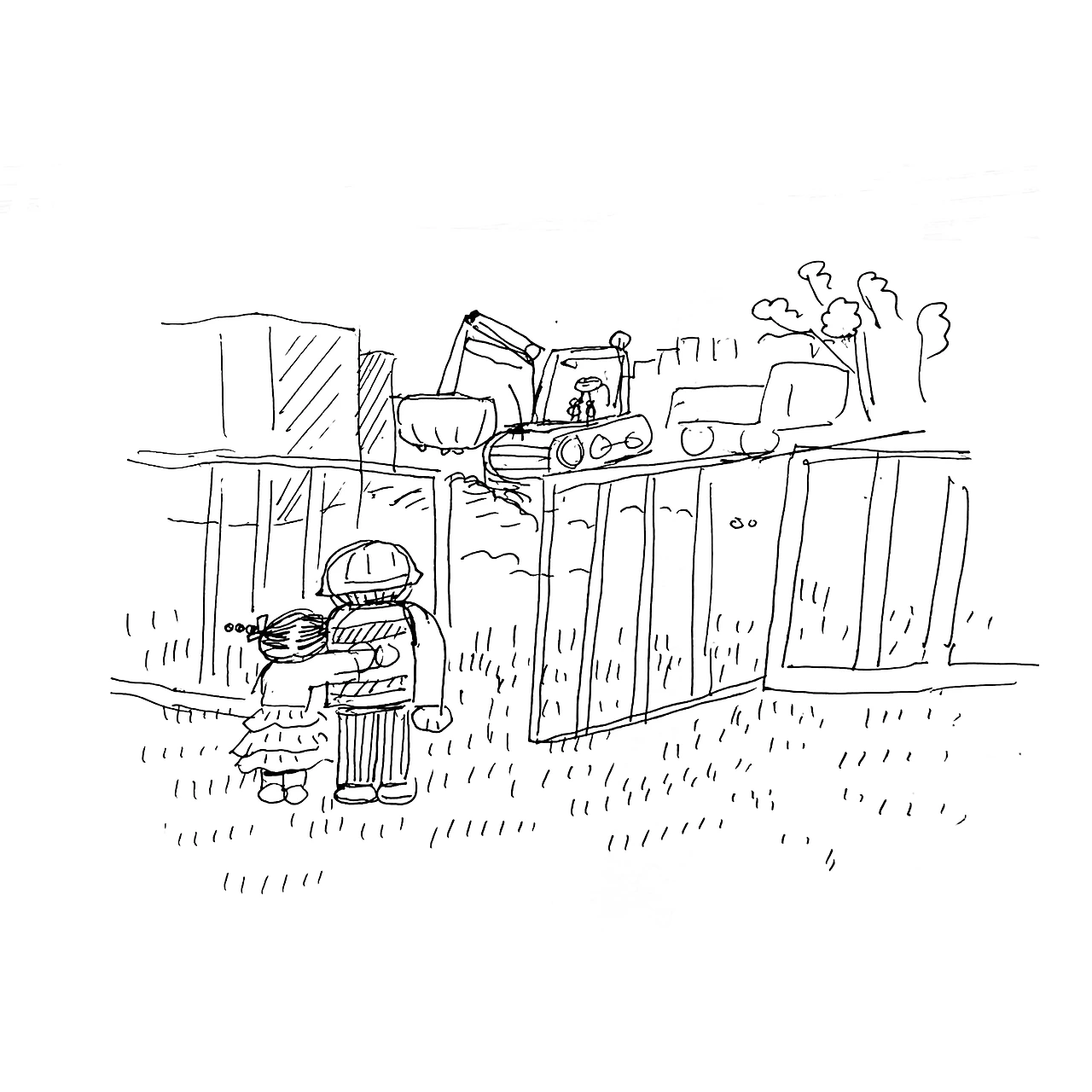 중장비를 구경하는 아이 그리기