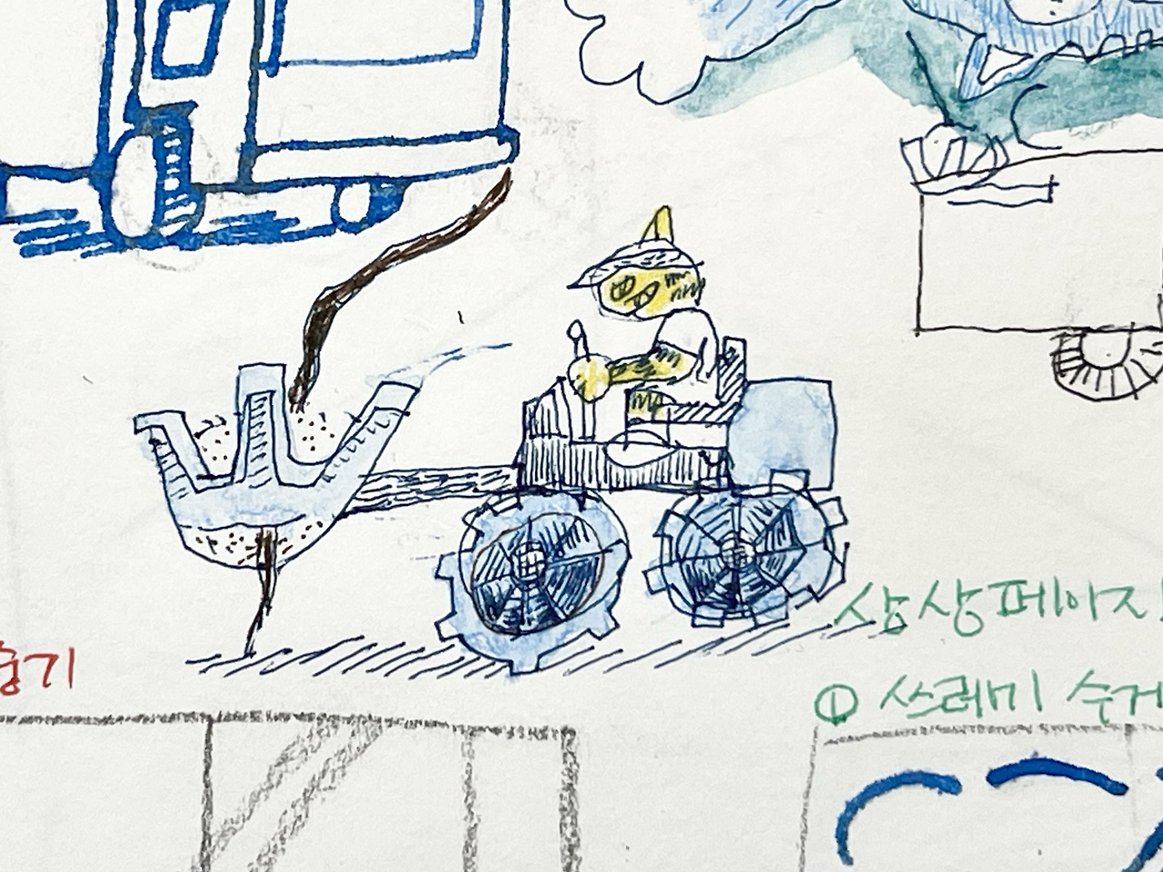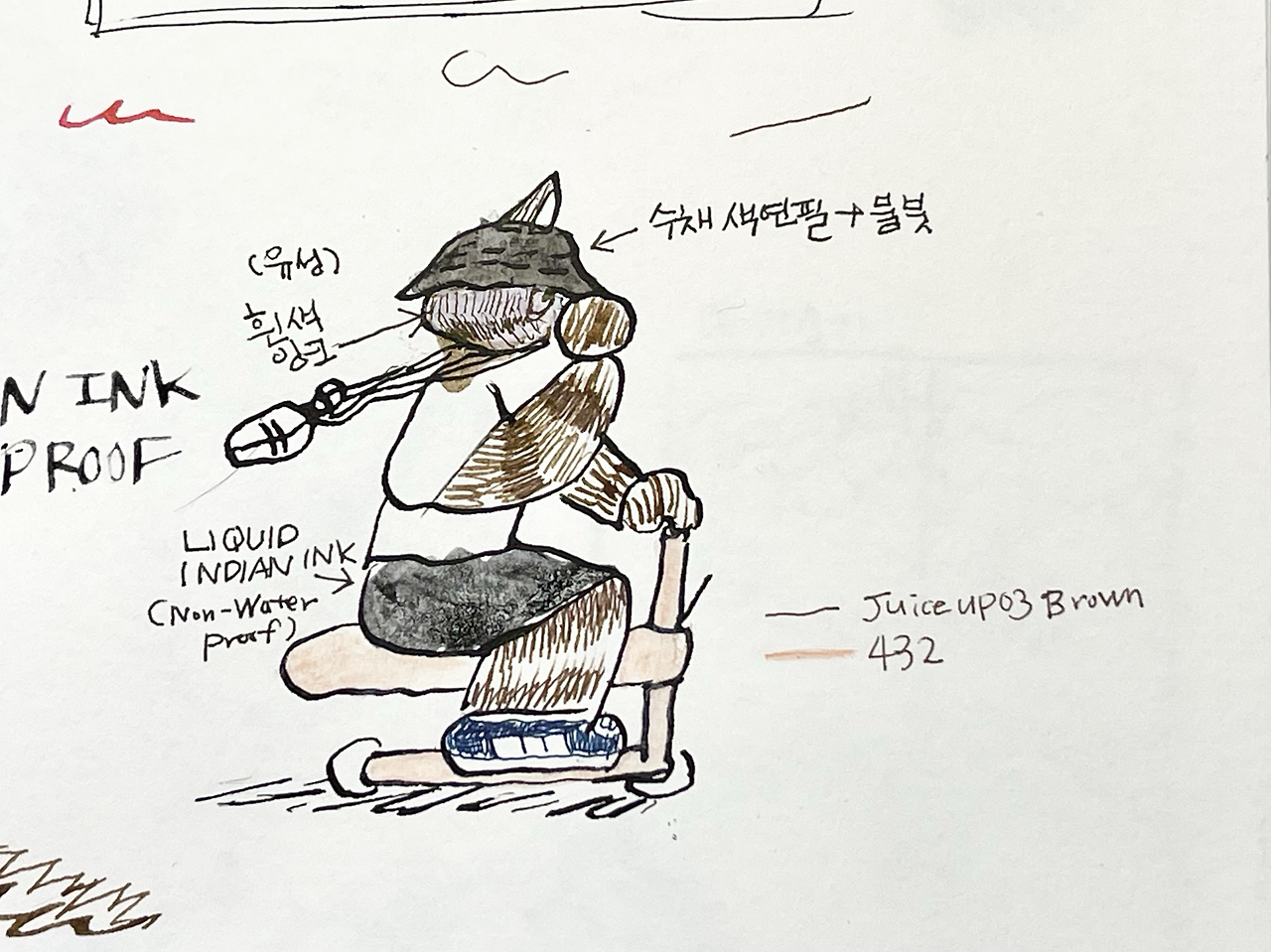 바로 수채색연필과 물붓을 덧입혀 번짐 정도를 확인. 만족!