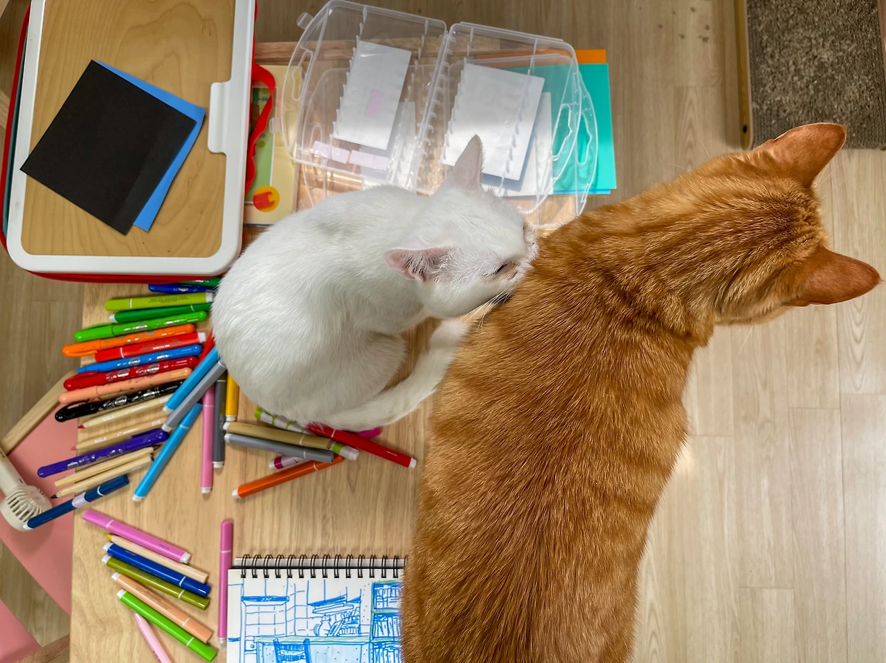 그림을 찍으려는데 올라와 방해하는 냥냥이들.