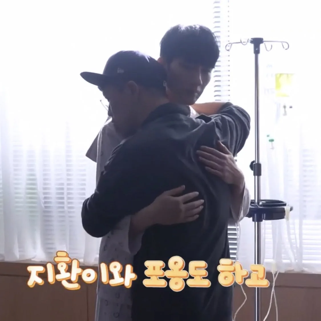 엄태구 배우가 포옹 신을 어떻게 찍을 지 감독님과 의논 중이다. 드라마 [놀아주는 여자] 중.