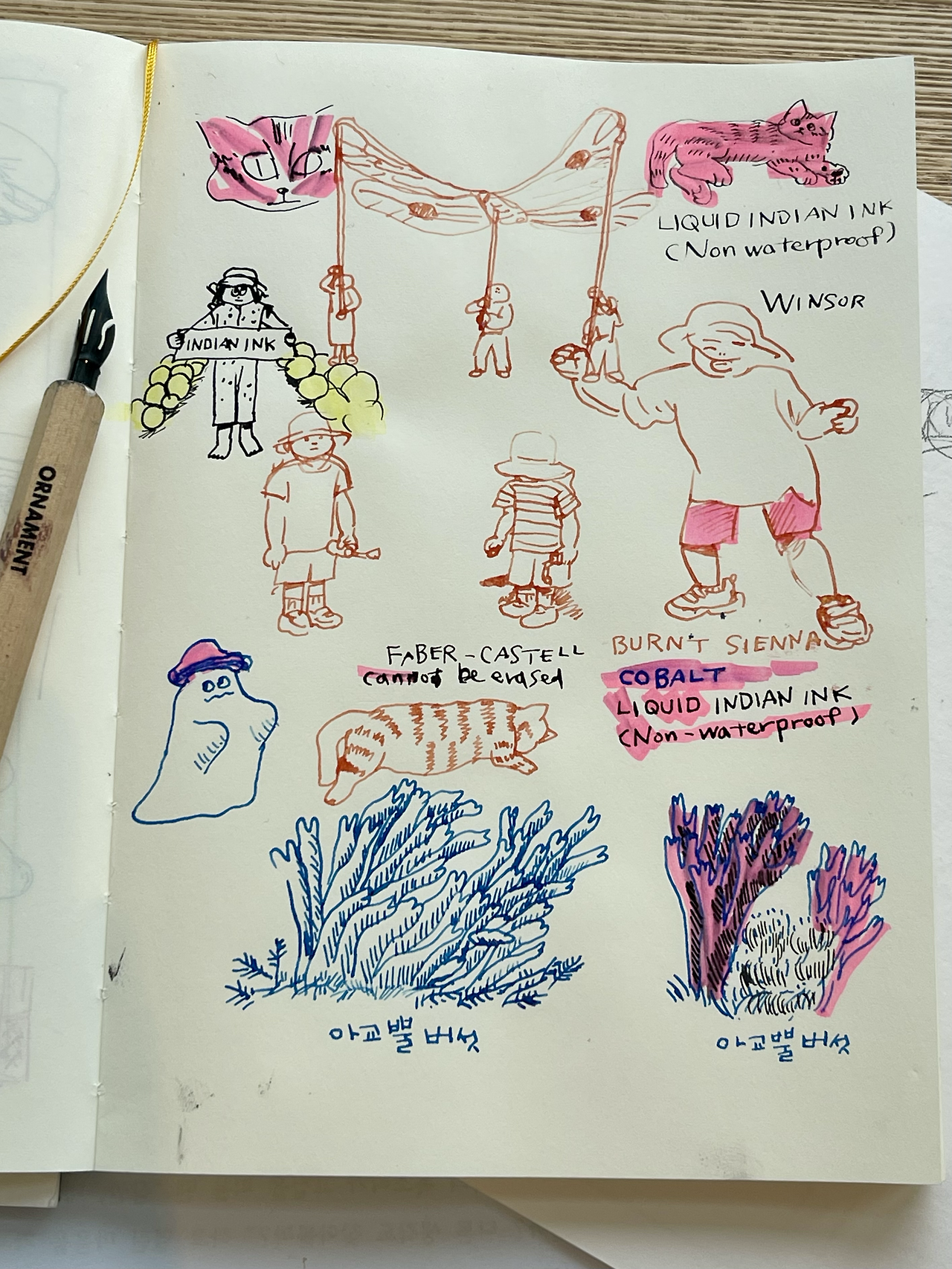만년필 잉크와 펜촉으로 손풀기용 그림 그리기