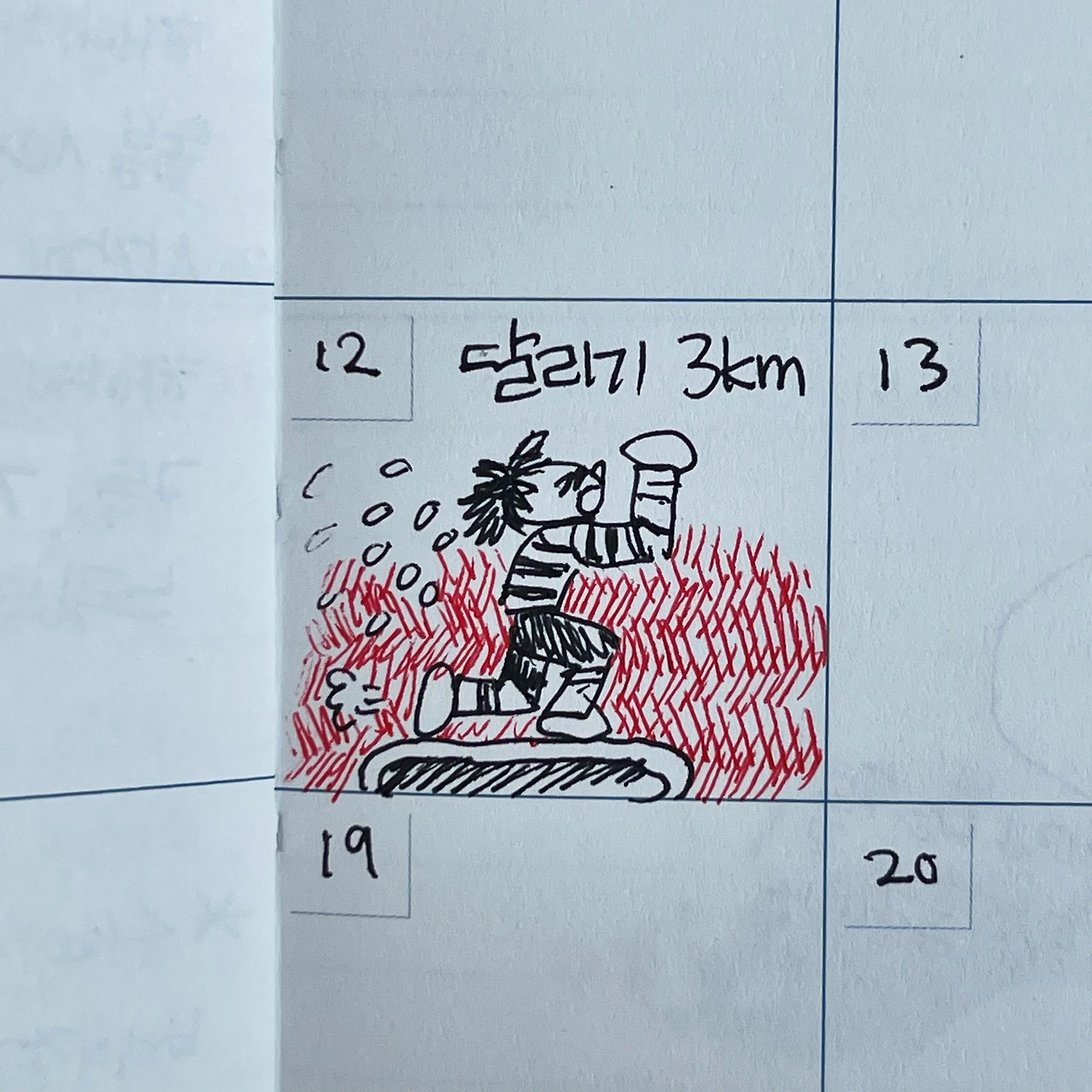 3월 12일 이후로 달리기를 못/안 했다.