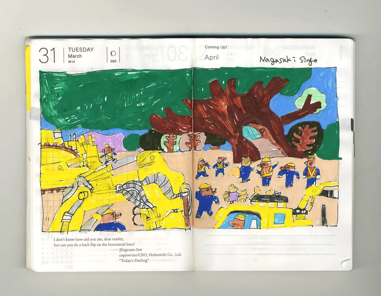 그림책 [맡겨 주세요, 두더지 건설]속 그림을 따라 그렸다.