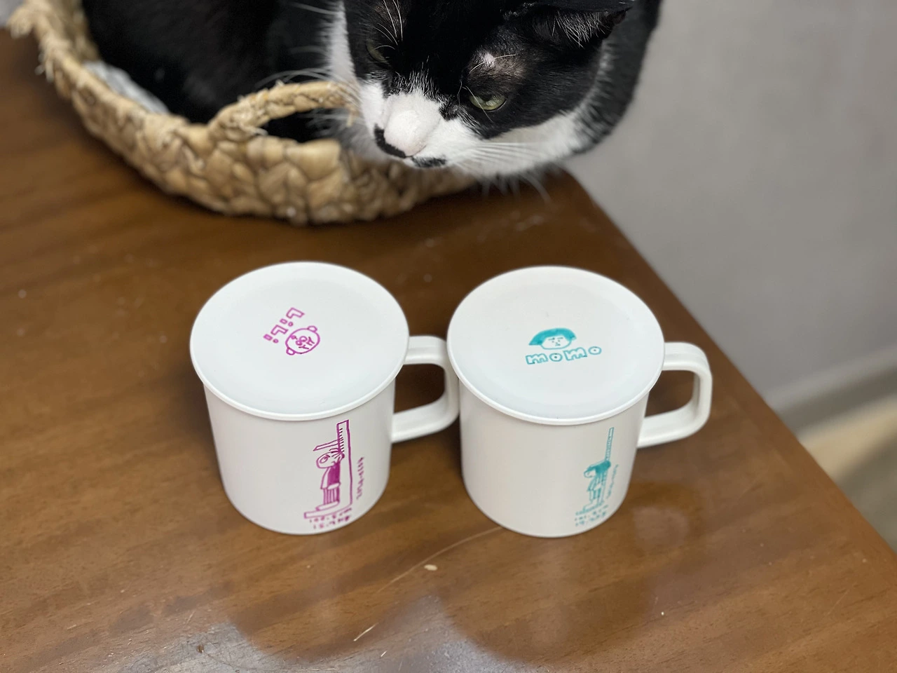 쌍둥이의 물컵 꾸며주기