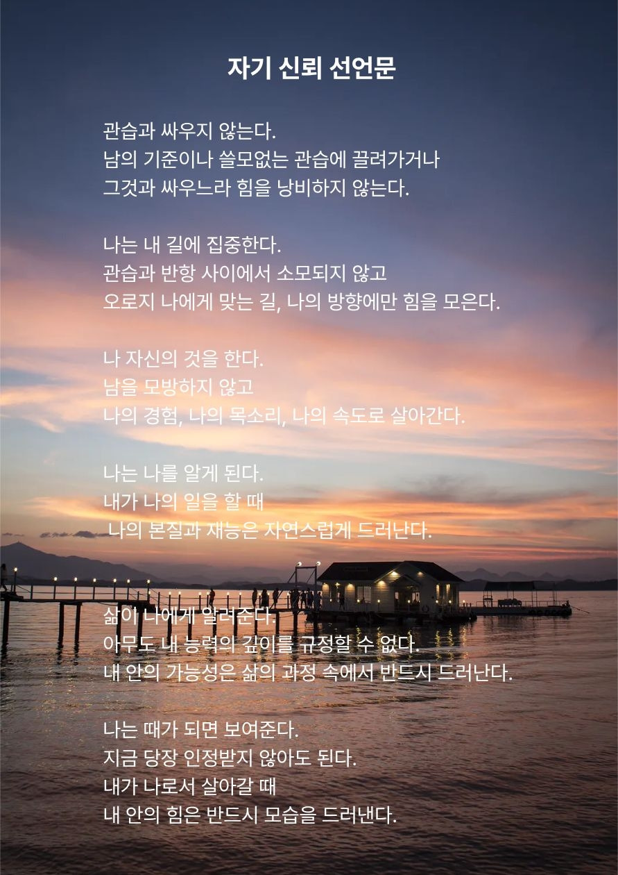 나의 언어로 다시 써 내려간 ‘자기 신뢰 선언문’이 되었다.