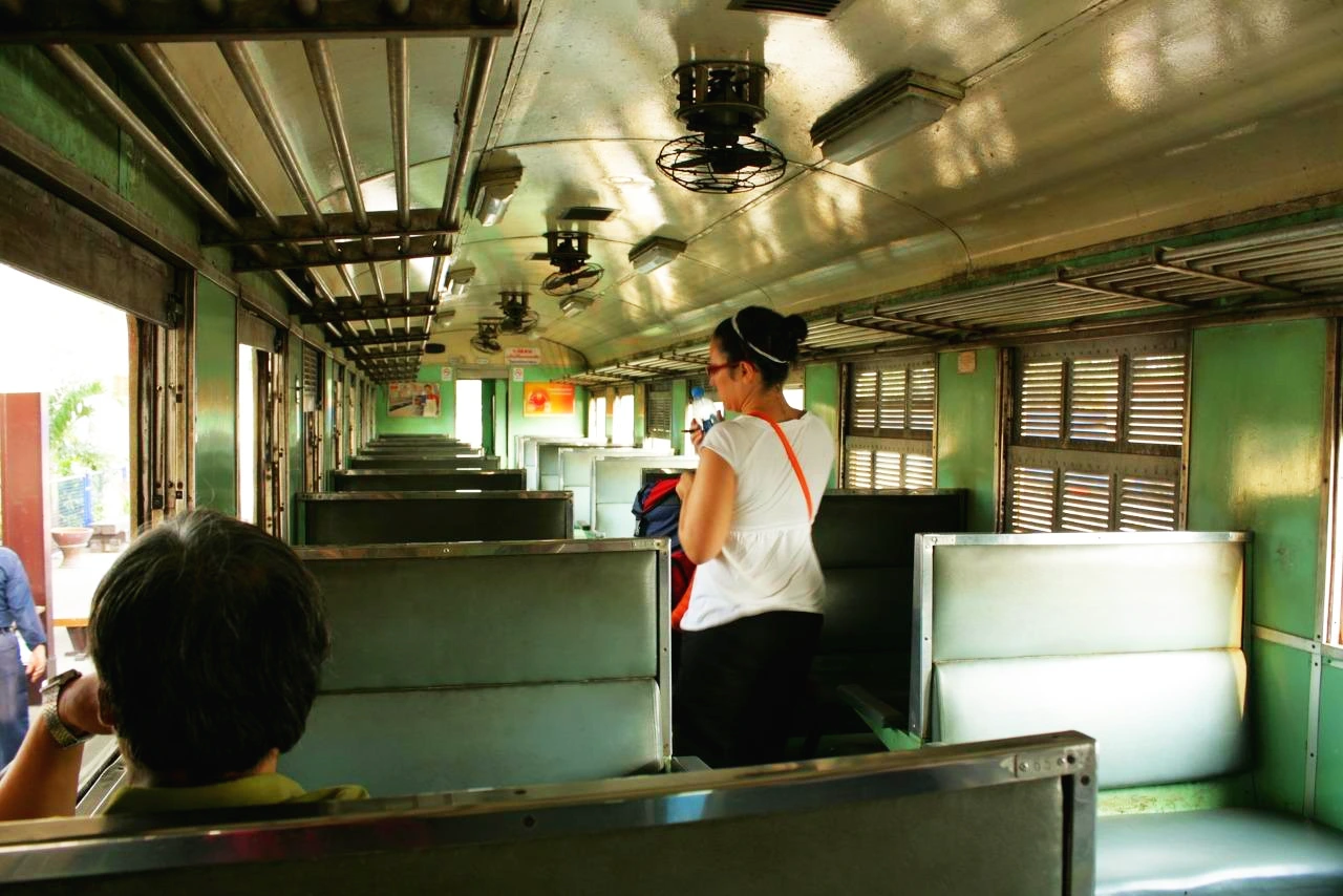 그렇게 기차는 8시 20분에 도착해서 탈 수 있었고, 기차를 타고도 한참 뒤에서나 출발했어. 깐짜나부리 도착시간인 10시 25분까지 과연 도착할 수 있을까? 로컬 기차의 모습을 전날 잠들기 전 생각해봤지만 이렇게까지 열악할지는 몰랐어. 우리나라에서 제일 저렴한 기차라해도 에어컨 정도는 설치되어 있잖아? 그런데 창문은 온통 열려져 있었고, 천장에는 나에게 시원한 바람 대신, 세월에 쌓인 먼지를 내뿜을 것 같이 생긴 선풍기가 매달려 있었어. 의자는 다행히 쿠션감이 있어서 천만다행이라 생각할 정도였지. '그래, 일단 시간안에만 가면 되지.' 이렇게 긍정적인 생각을 한 나는 바보 멍청이였어. 출발한지 얼마 지나지 않아 가다 서다를 계속 반복하는데 무슨 이유에서 정차하는지도 모르겠고 심지어 15분씩이나 머물러 있는게 아닌가... 한국인의 빨리빨리 급한 성격탓에 속이 터지기 직전이었어. 하지만 내가 이런다고 상황이 달라질리 만무하니 그저 답답한 내 속을 부여잡고 있을 뿐이었어. 이 기차가 깐짜나부리역에 도착하는 시간은 표에도 정확히 10:25분이라 쓰여져 있었지만, 출발시간 딜레이... 중간정차로 딜레이... 이쯤되니 과연 몇시에 도착할지 날 궁금하게 만들었어.