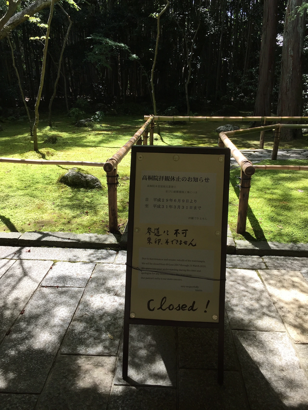 이곳을 처음 알게 된 2018년 봄부터 나는 교토를 들를 때마다 이곳을 갔는데, 2019년 여름에 갔을 때는 (당시 3월에 보수가 완료될 예정이었다) 길에서 만난 분이 "아직도!?" 하고 외쳐서 둘이서 여긴 대체 언제 재개장을 하냐며 한참을 투정했었다.