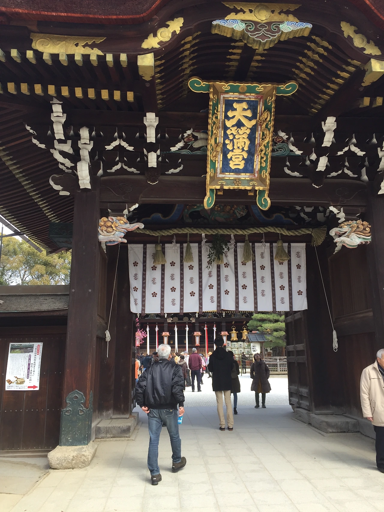웅장한 문이 맞아주는 이 커다란 신사는 학문의 신을 모시는 곳으로 유명하다. 얼마나 유명하냐면, 교토로 수학여행을 오는 모든 고등학교들은 여길 들른다고 말할 수 있을 정도고, 매년 입시원서 제출 시기가 되면 이곳에서 원서를 쓰는 학생들이 가득하며, 이곳의 부적과 연필은 모두가 사가는 선물이다.