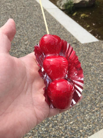 봄에 가면 운이 좋게, 이런 딸기를 맛볼 수 있다. 설탕 옷을 입힌 사과인 아메링고는, 많은 외국인들이 일본의 축제에서 먹는 것으로 알고 있지만, 사실 엄청 딱딱해서 먹기 힘들다. 대신 이런 딸기처럼 부드러운 과일도 같이 파는 경우가 많은데, 이런 건 정말 맛있고 달콤하니 한 번쯤 시도해보길. 당신의 하루가 달콤해질 거다.