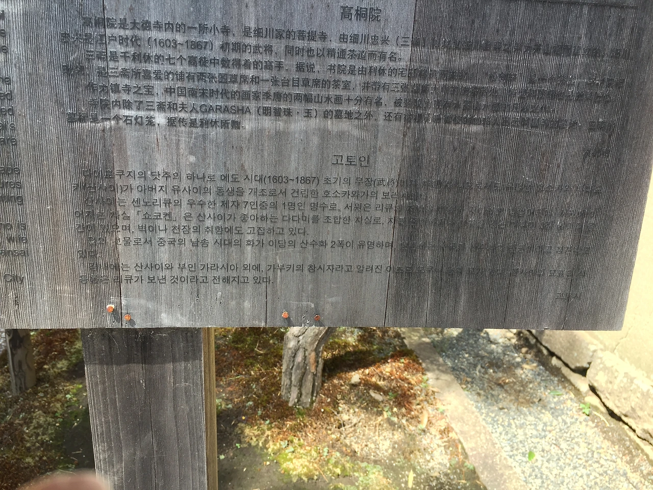 다이토쿠지에서 또 정말로 아름다운 곳을 말하자면, 바로 코토인. 역사를 좋아하는 내게 전국시대 인물 중에서 특히 좋아하는 인물이 있다면, 바로 가라샤라는 여성이다. 이 곳은 가라샤와 인연이 깊은 절로, 오랫동안 호소카와 집안(가라샤의 남편 집안이다)의 절로 쓰인 곳이다.