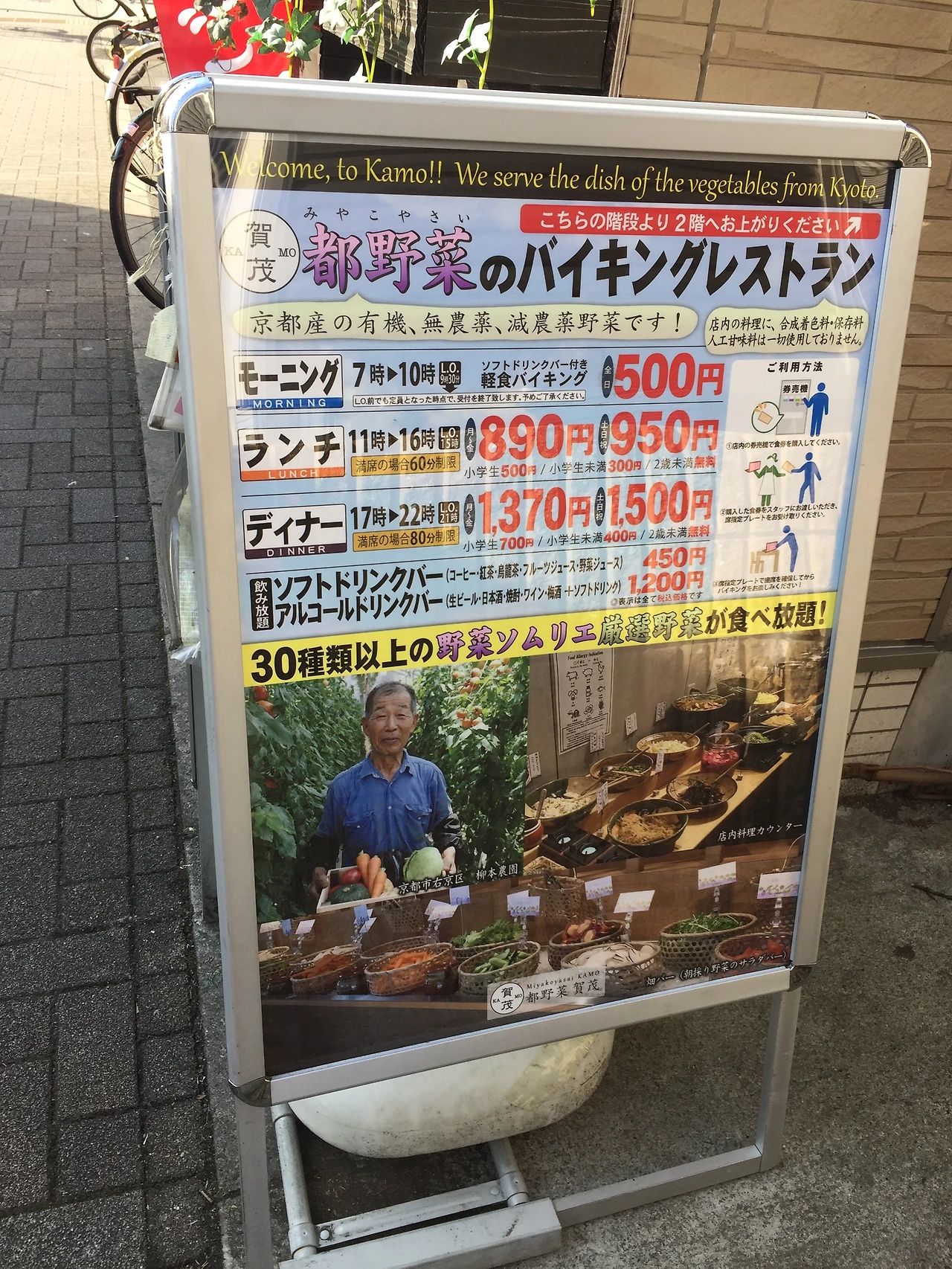 이곳은 비건을 지향하는 식당이라기보단, 교토의 야채를 소비하기 위해서 만들어진 식당인데, 아침은 비건식으로 운영되고 있으며 단돈 500엔으로 즐길 수 있다. 500엔인 만큼 음식의 종류는 적지만 그 모든 음식이 정갈하고 매우 맛있었다. 특히 좋아하는 음식인 卯の花(우노하나 : 콩비지로 만든 야채 음식)에 밥과 된장국을 먹으면서 하루를 시작할 수 있어서, 굉장히 즐거웠다. 이 식당은 교토에 세 군데 정도 있는데, 수족관 근처의 이곳이 가장 사람이 적고 조용하다. 평소 비건을 지향하는 사람이나, 야채를 좋아하는 사람이라면 꼭 와보는 걸 추천한다.