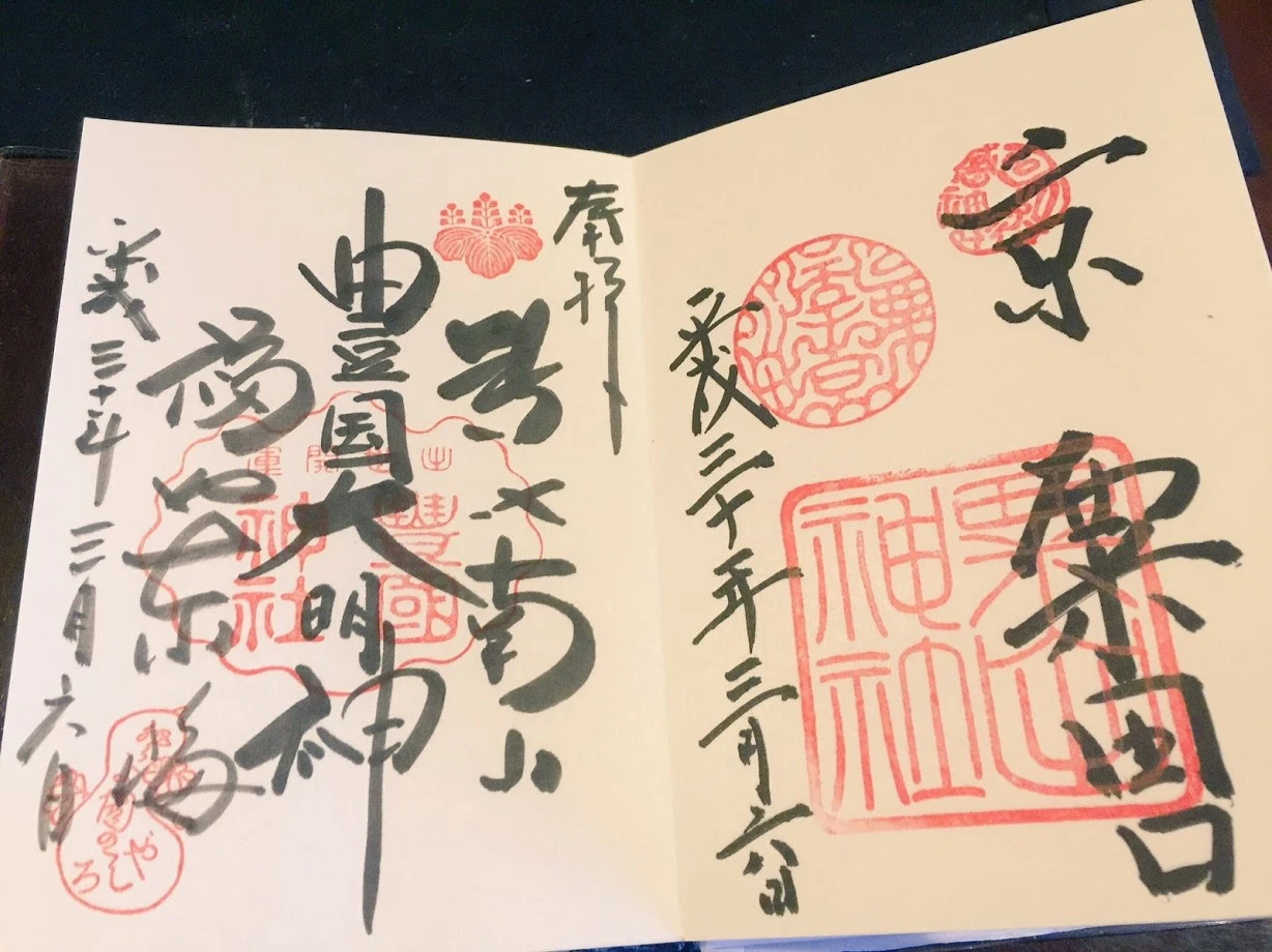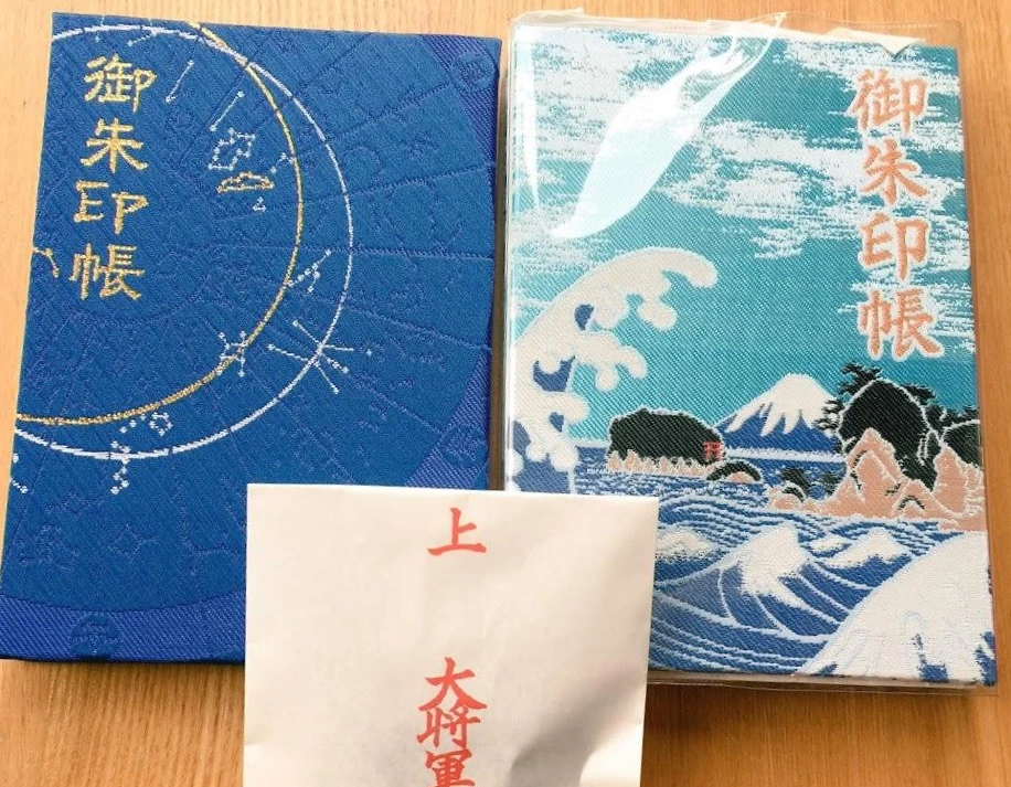 御朱印帳(고슈인쵸, 한국어로는 주인장)라고 불리는 이 수첩은 주인을 모으기 위한 수첩이다. 신사마다 각자의 디자인을 만들고, 문구회사들도 이 수첩을 제작해서 판매한다. 그래도 굳이 산다면, 가기 힘든 곳에 있는 신사의 예쁜 디자인이 좋지 않겠는가. 내가 갖고 있는 주인장 또한, 에노시마의 바다가 멋지게 그려진 에노시마 신사의 주인장과, 별자리가 그려진 화려한 大将軍八神社의 주인장이다.