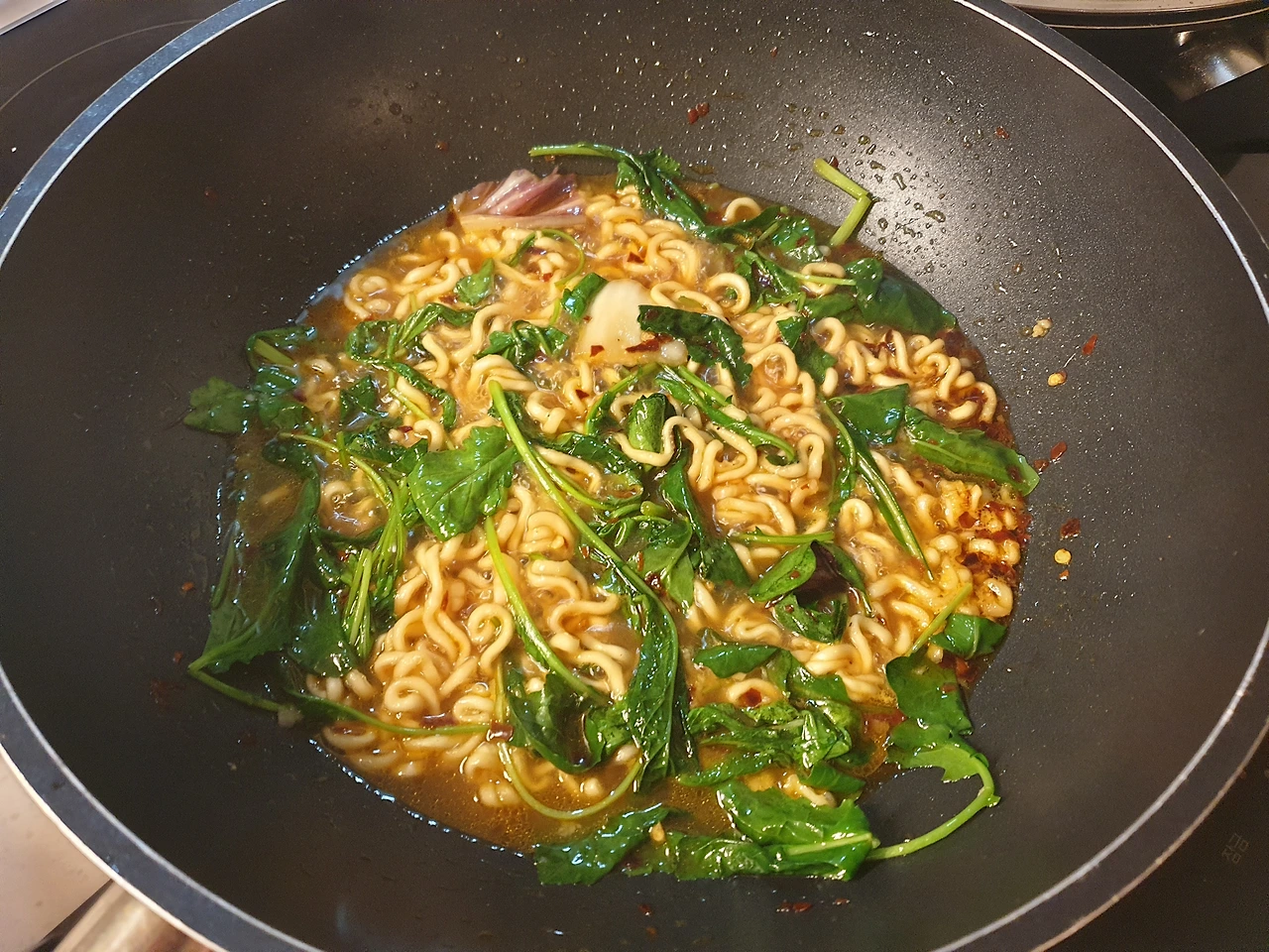 채소 듬뿍 매콤 탕면 완성!