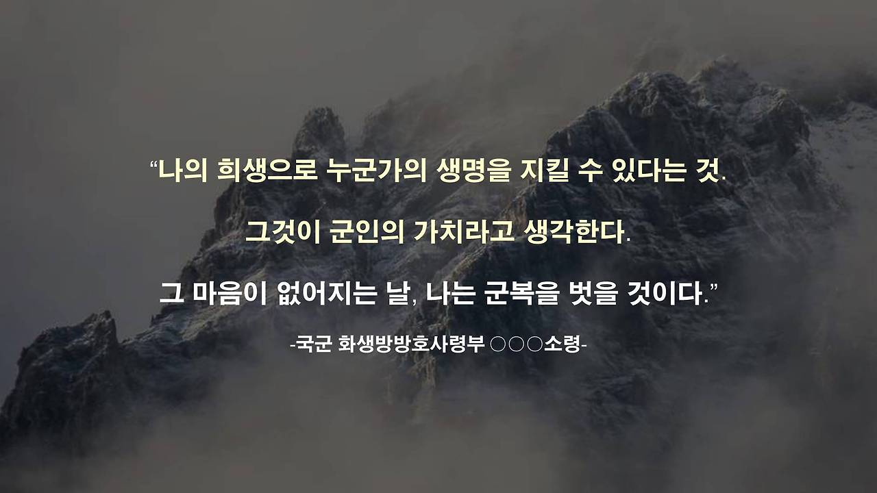아래의 말은 특히, (위의 인터뷰 대상들처럼) 장교나 부사관이 아닌, 병사가 한 말이기에 더욱 의미가 남다르다.