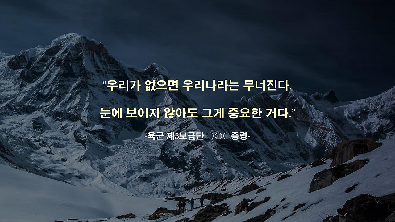 우리는 대한민국 최 일선에서 나라를 지킨다.