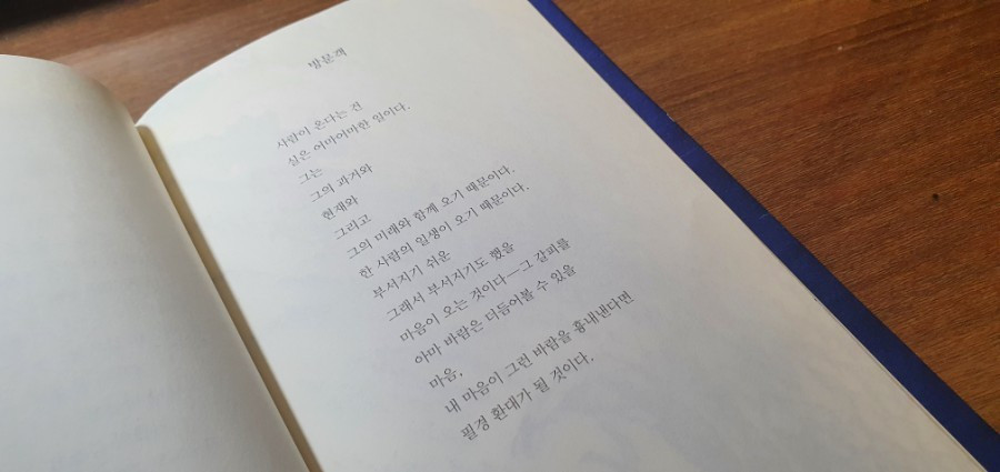 [사람이 온다는 건 실은 어마어마한 일이다. 그는 그의 과거와 현재와 그리고 그의 미래가 함께 오기 때문이다. 한 사람의 일생이 오기 때문이다. 부서지기 쉬운, 그래서 부서지기도 했을 마음이 오는 것이다ㅡ 그 갈피를 아마 바람은 더듬어볼 수 있을 마음. 내 마음이 그런 바람을 흉내 낸다면 필경 환대가 될 것이다.]