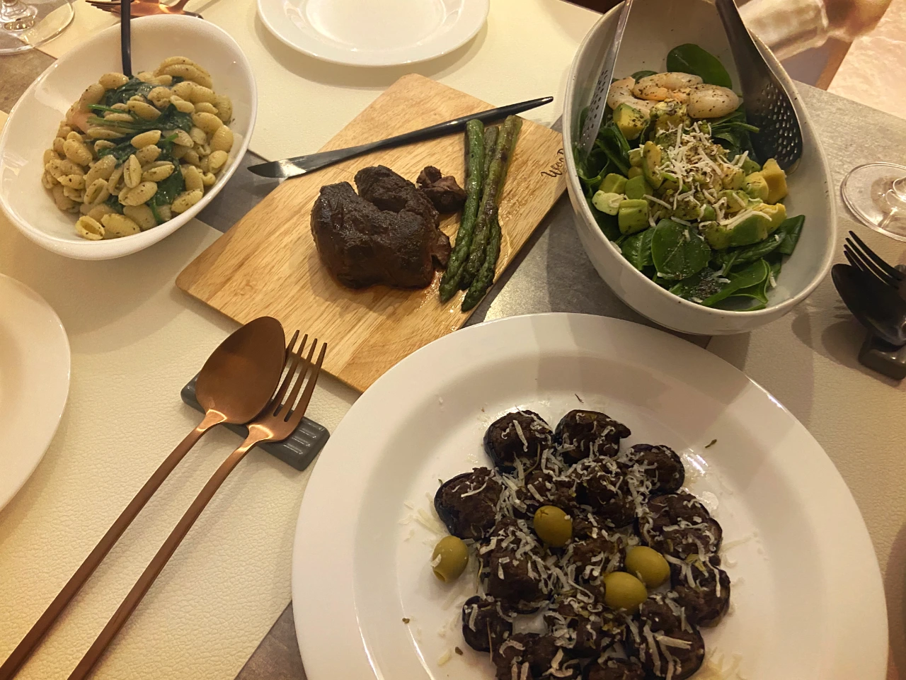 그녀들은 감사하게도 내 초대에 응해주었다. 우리는 어느 토요일의 다소 이른 저녁, 나의 집에서 만나기로 했다. 고맙게도 그녀들이 딱히 가리는 음식이 없었기에, 메뉴를 어렵지 않게 고를 수 있었다. 와인을 마시면 어떨까 하는 생각에 양식 위주로 준비를 했다. 최근 내가 너무나 좋아해서 자주 먹는 아보카도를 넣은 어린잎 시금치 샐러드, 미리 만들어두기에 좋은 트러플 바질 페스토 냉 파스타, 언젠가 어느 식당에서 먹어보고 '나도 만들어봐야지'하고 생각했던 소고기를 얹은 구운 가지 요리, 고기가 빠지면 안 된다는 생각에 준비한 호주산 목초육 안심 스테이크에 곁들임용 아스파라거스. 그리고 가격 대비 맛이 훌륭한 와인. 그 후 나는 그녀들에게 디저트와 음료를 부탁했다. 그녀들은 흔쾌히 응해주었다