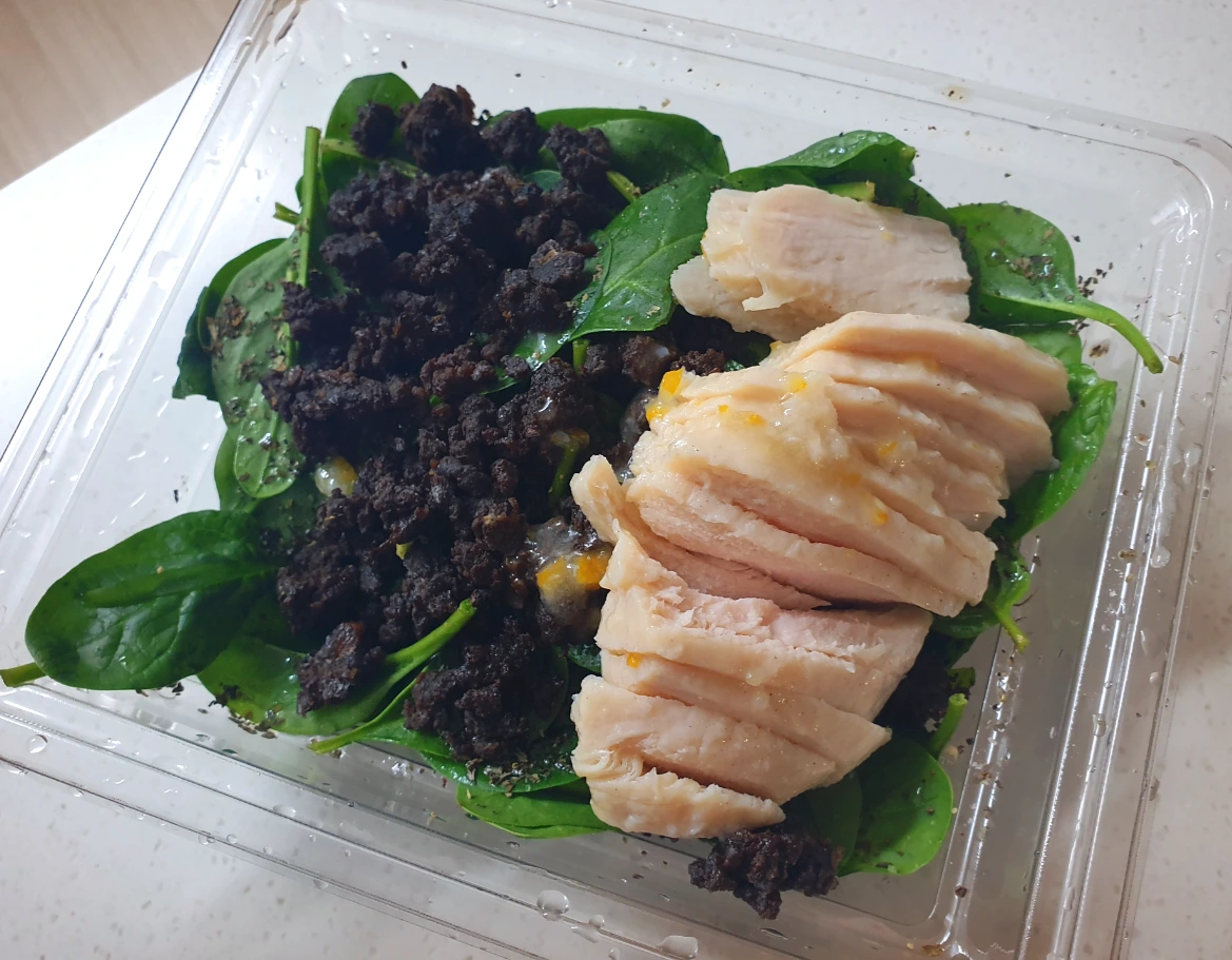 소고기 유자 갈릭 닭가슴살 시금치 샐러드 완성!