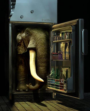 저겨… 근데 코끼리를 냉장고에 어떻게 넣죠?