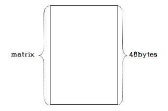 그렇다면 우리가 시작하는 기준을 바꾸게 되면 matrix[2][1]과 같은 결과를 갖는 matrix[1][5], matrix[0][9]도 가능해 집니다. 처음에 그린 바둑판 식 행렬 배열이라면 전혀 불가능한 일이지만 놀랍게도 다음 세가지 수식은 메모리의 같은 곳을 같은 사이즈만큼 참조하고 있습니다.