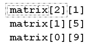 그러면 앞에 그 배열 선언을 이어받은 matrix[2][1]의 위치는 어떻게 한번에 찾아 갑니까?