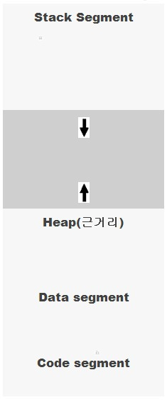 이것은 일반적으로 프로그램이 메모리에 올라가 프로세스가 될 때의 메모리 그림입니다. 물론 OS마다 다르기도 하지만 기본적인 구조는 다음과 같습니다.