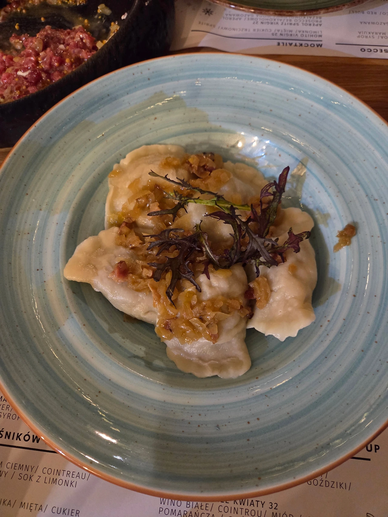 만두, 감자전, 육회. 모두 우리나라 음식들이다. 피에로기, 플라츠키, 타르타르. 폴란드의 만두, 감자전, 육회다. 처음 폴란드 식당에서 먹었던 것이 ‘플라츠키’였는데, 비주얼을 보고 익숙한 느낌을 받았다. ‘어, 이거 감자전인데..?’ 하얀 소스에 찍어먹는 것만 빼면, 플라츠키는 감자전 그 자체였다. 덕분에 한식을 맛볼 수(?) 있어서 행복하긴 했는데, 여기서 끝이 아니었다. 살을 에는 듯 추웠던 크리스마스 당일, 우리는 시내의 한 폴란드 식당에서 식사를 했다. 피에로기, 타르타르와 생맥주 2잔을 시켰다. 그 날도 한식을 먹고 있는 듯 아닌 듯, 긴가민가한, 친밀하면서도 의아한 기분을 느끼며 음식을 먹었다. ‘피에로기’는 위에서 보고 옆에서 봐도, 어디서 봐도 만두였다. 이게 만두가 아닐리가? 맛은 우리나라 만두와는 조금 달랐지만, 만두피 안에 고기를 넣은 것은 똑같았다. 차이점이 있다면 우리나라 만두피가 더 얇다는 것. 또 폴란드에서는 만두피 안에 고기뿐만 아니라 치즈와 감자, 과일을 넣기도 한다. 타르타르는 유명해서 모르는 사람이 없다. 타르타르의 원조는 폴란드인데, 원조 나라에 걸맞게 정~말 맛있다. 쫄깃쫄깃한 식감하며, 감칠맛은 기본이고, 곁들여진 노른자를 터뜨려서 먹으면 고소함까지 함께 느껴진다. 우리나라 육회의 상위버전 같다. 이외에도 아직 맛보지는 않았지만 ‘플라키’라고 하는 내장탕도 있다고 한다. 우리나라의 국밥과 비슷한 맛이 난다고 한다.