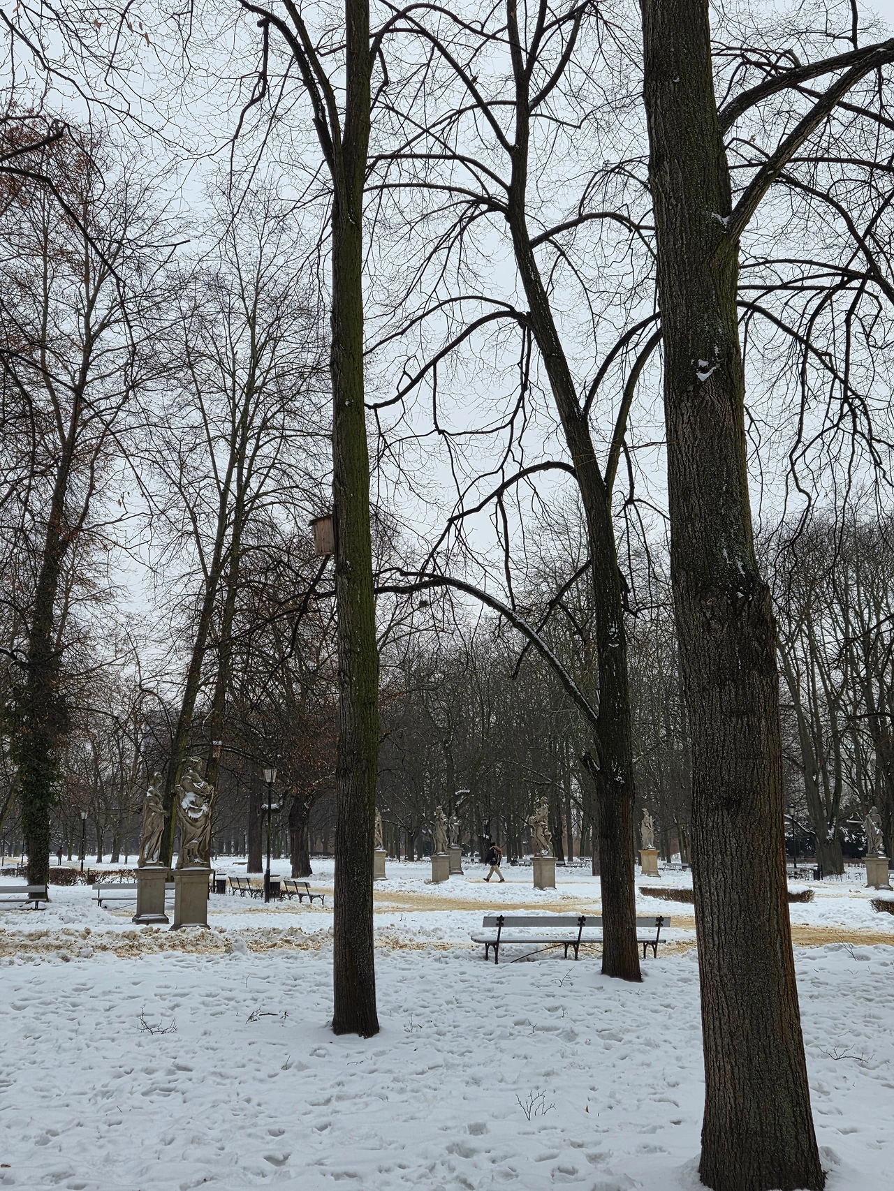 코끝이 시렸다. 한시간도 채 안되어 미술관에서 나와, 앞에 있는 색슨 공원쪽으로 발걸음을 옮겼다. 목적지를 정해놓고 움직인 것은 아니었다. 그저, 오늘은 조금 날이 풀렸구나, 생각을 하면서 녹지 않은 눈과 섞인 옅은 갈색의 땅을 밟으면서, 내 양 옆, 하늘 위로 쭉쭉 뻗은 나무들의 분위기를 한껏 느끼면서 걸었다. 폴란드에는 공원이 정말 많다. 유럽의 그 어느 나라보다 공원이 많은 나라라고 한다. 겨울에 걷는 공원도 꽤 아름답다. 12월에 살포시 내린 하얀 눈들은 2월 중순을 향해가는 지금도 녹지 않고 온 공원을 하얀 천으로 덮어놓았다. 공원을 걷다보면, 영감이 떠오를 때도, 나에 대해 생각할 시간이 생기기도 하기에, 나는 폴란드의 공원을 사랑한다.