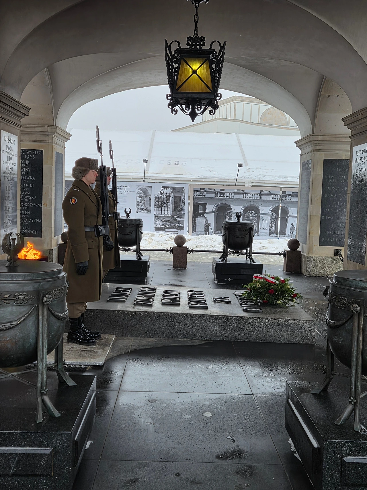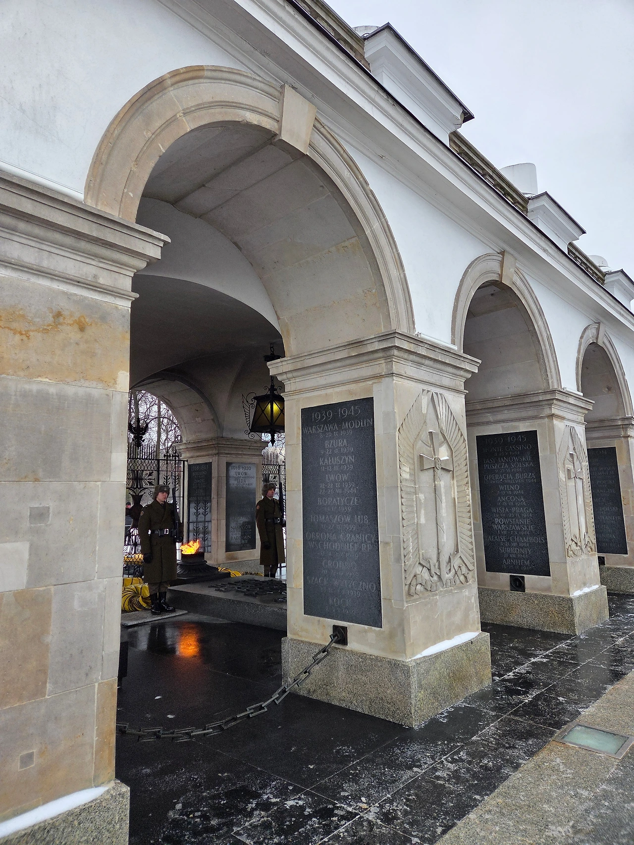 그 날도 불쑥 떠오르는 생각을 어느 것 하나 내치지 않고, 받아들이며 걷던 중, 조그마한 건물, 아니 건물이라고 하기에도 어려운, 기둥과 지붕만으로 구성되어 있는, 앞과 옆이 탁 트인 건축물을 발견했다. 아주 큰 건물의 한 부분을 떼어온 것처럼 생긴 그 건물엔 기둥마다 글자들이 쓰여있었다. 기간과 지역, 그게 뭘 의미하는 지 그때까지 알지 못했다. 기둥 옆에 서니, 군인 두 명이 가운데에 미동도 없이 서 있었다. 군인들 사이엔 아주 크고 네모난 돌이 있었고, 그 앞엔 폴란드의 국기와 같은 색깔, 빨간색과 하얀색의 꽃들이 놓여있었다. 휴대폰을 열고, 구글 지도로 내가 있는 곳을 찾아보니, ‘무명용사의 무덤’이라는 곳이었다. 전쟁으로 죽은 수많은 무명용사들을 기리는 묘비를 근위병들이 지키고 있는 것이었다. 24시간, 365일, 하루도, 한 순간도 빠짐없이, 그들은 무명용사들의 묘비를 지킨다. 내가 서있는 곳은 원래는 궁전이었으나, 나치독일이 모두 파괴하고 신기하게도 남은 부분이 지금의 무명용사의 무덤이라고 한다. 복원된 모형을 보니, 아주 큰 궁전이었다. 그 옆엔 나치가 파괴한 직후의 사진들도 있었는데, 정말 폐허 그 자체였다. 폴란드는 남은 건축물에 무명용사의 묘비를 세웠고, 큰 광장 앞 높은 게양대에서는 폴란드 국기가 휘날리고 있었다. 그리고 그 옆으로 조금 더 가다보면 카틴 숲 비행기 추락사건에서 죽은 사람들의 이름이 새겨진 비석도 있었다. 오후 4시 정각이 되자, 3명의 근위병들이 국기 쪽에서 나타나 근위병 교대식을 했다. 낮이고 밤이고, 땡볕이든, 한파든, 그들은 매일 그 묘비를 지킨다. 국가에 대한 애정과 세상을 떠난 무명 용사들에 대한 존경과 잊지 않겠다는 다짐이었다. 그 앞에 선 내 눈에서 울컥, 눈물이 차오르는 것은 알 수 없는 감정이었다.