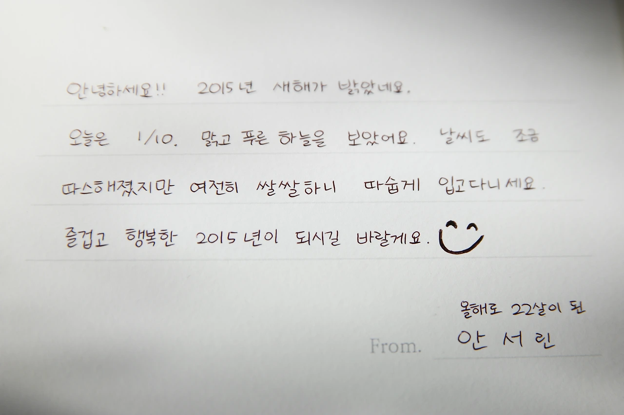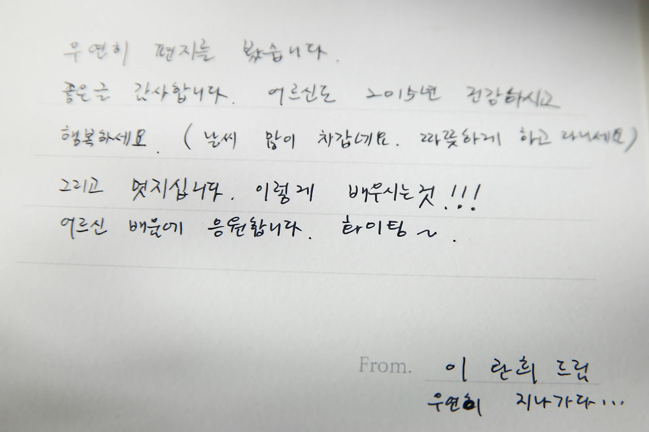 약 한 달을 회의하던 끝에 우리는 하나의 아이디어를 찾을 수 있었다. 글을 처음 배우신 어르신들과 글이 너무 익숙해져 버린 젊은 사람들 사이에 손으로 쓴 편지를 주고받는다면 어떨까, 첫 프로젝트가 가지고 있는 인사의 의미도, 그리고 그 둘 사이에 오가는 문장의 의미도 울림이 있지 않을까, 하는 아이디어였다.