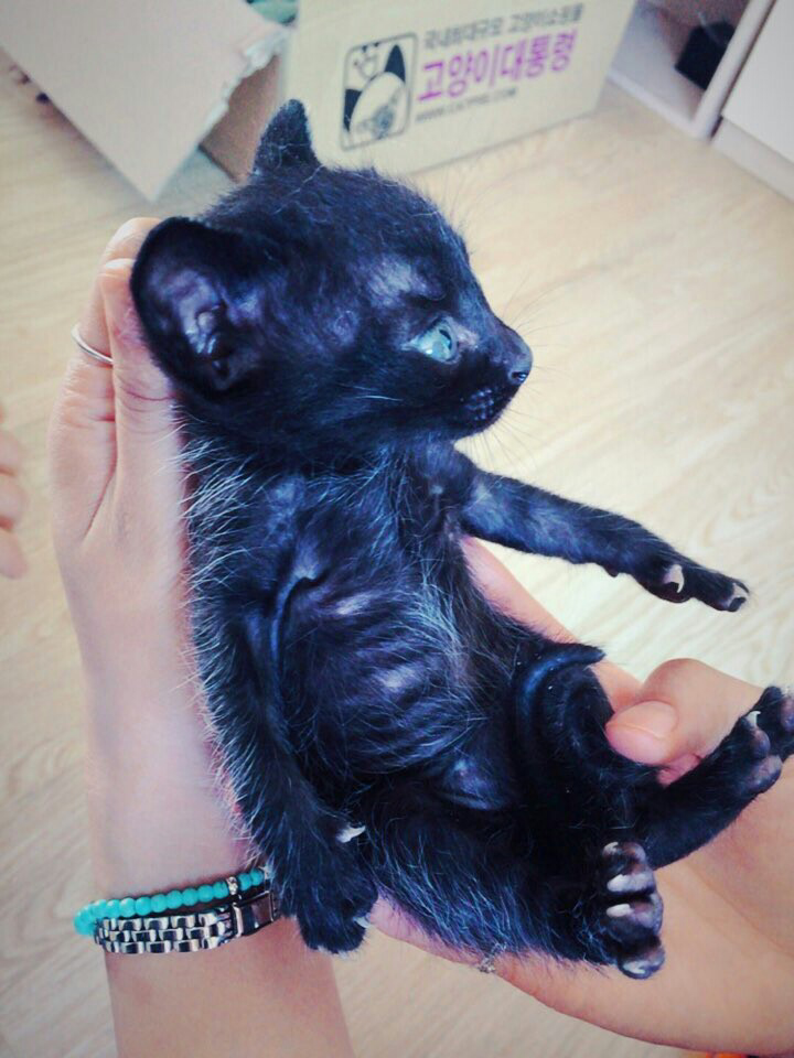 고양이는 내 생각보다 아주 작고, 아주 심하게 떨었으며, 아주 뜨거웠다.