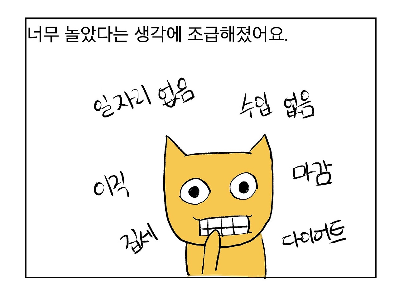 마지막으로 네컷만화는 아래와 같이 생겼습니다. 일상적인 내용을 담고 있어요.