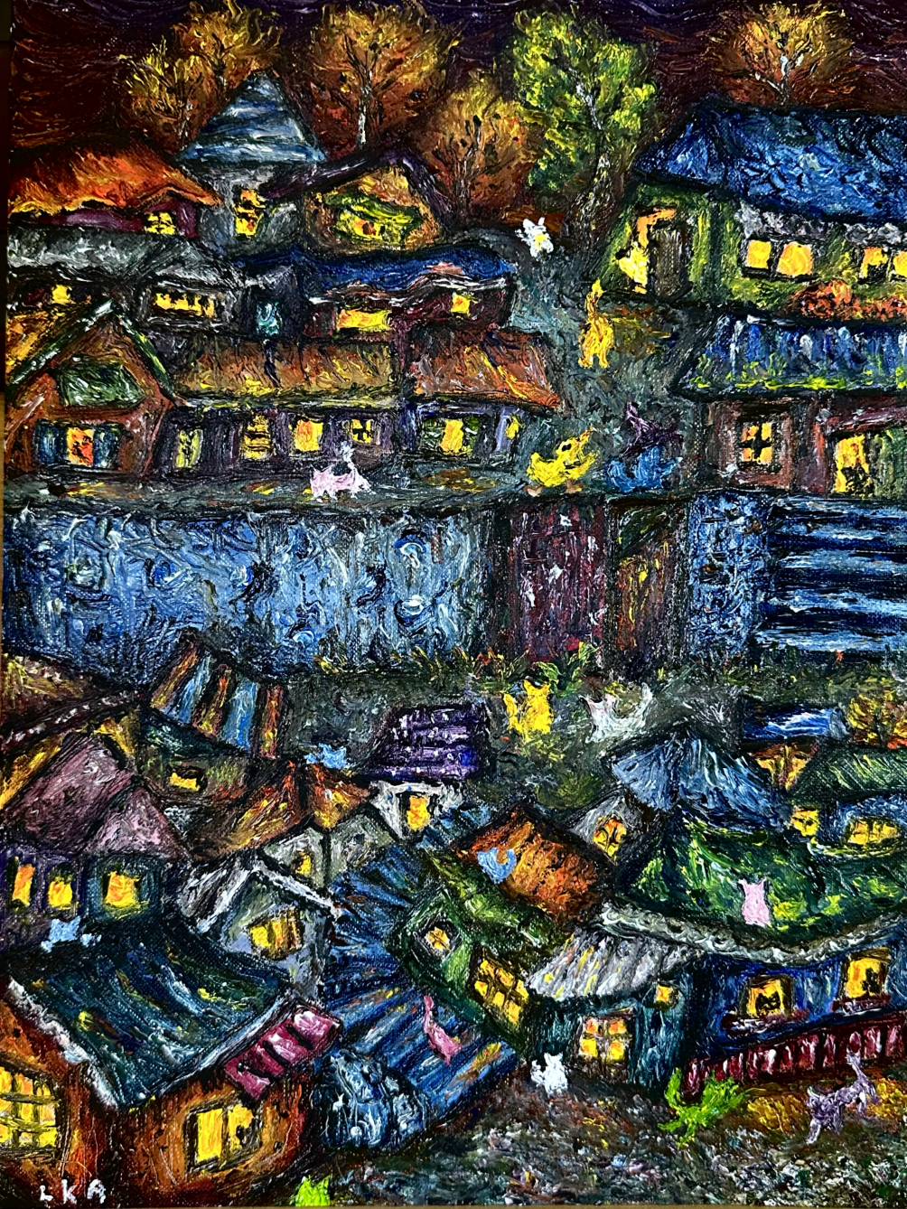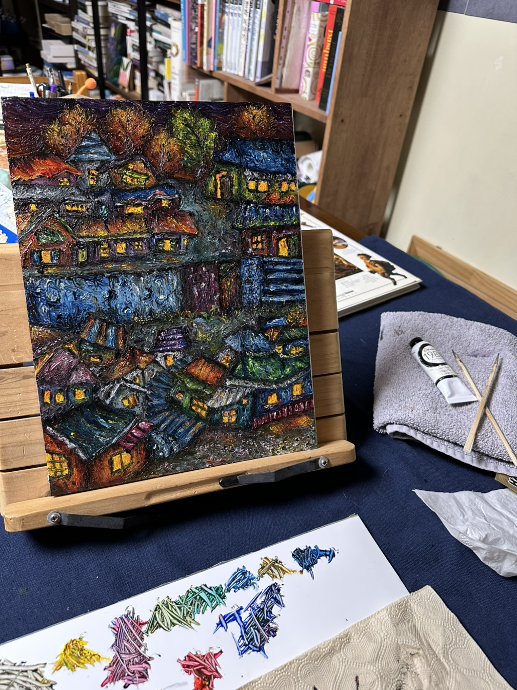 작은 캔버스에 유화물감으로 그린 실험 작업이다.