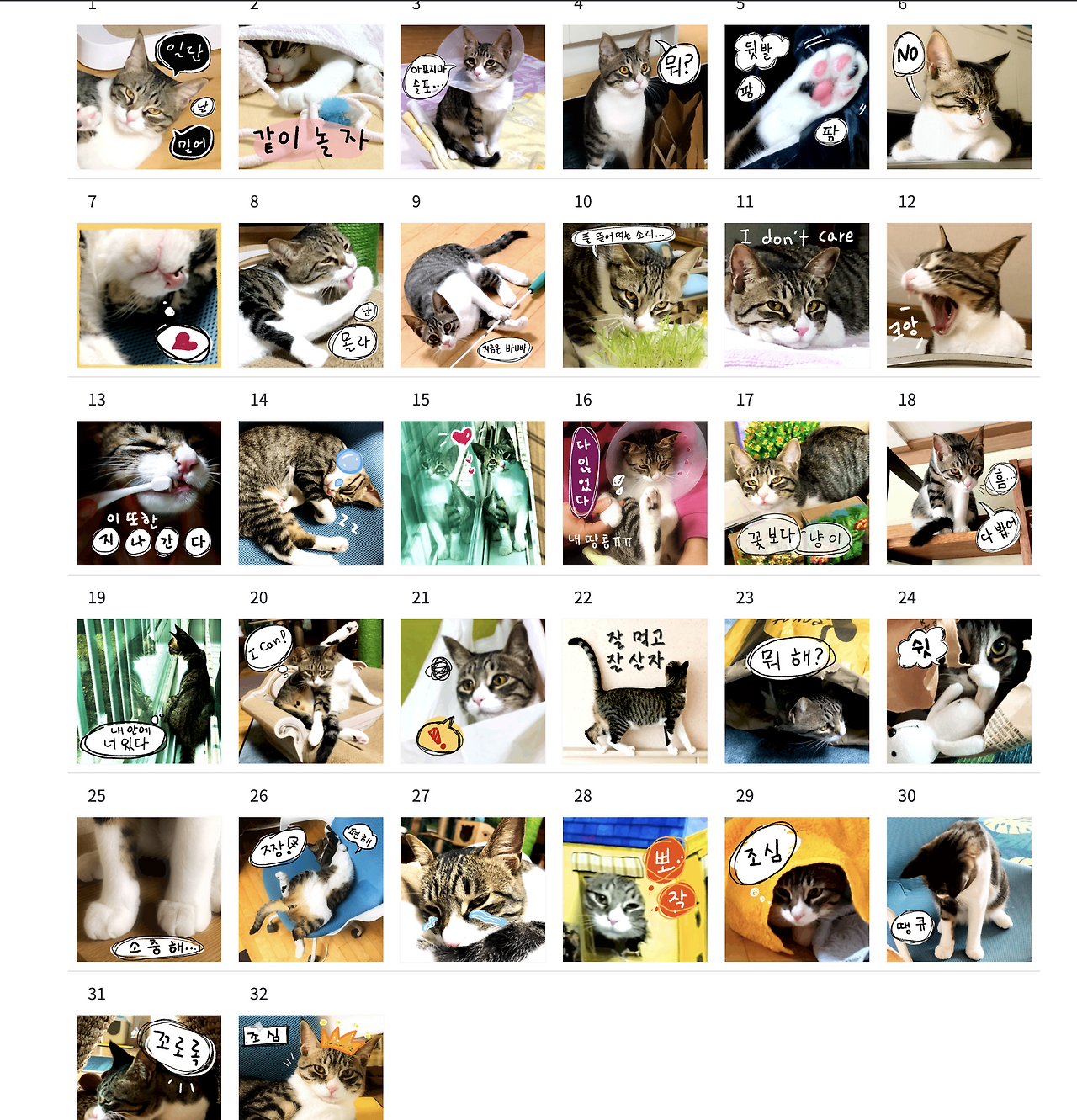 고양이는 당연히 내 고양이 아라가 모델이 되어주었다. 고양이를 키우게 되면서부터는 핸드폰의 사진첩엔 온통 고양이로 가득하다. 맘에 드는 사진을 골라내어 편집을 시작했다.