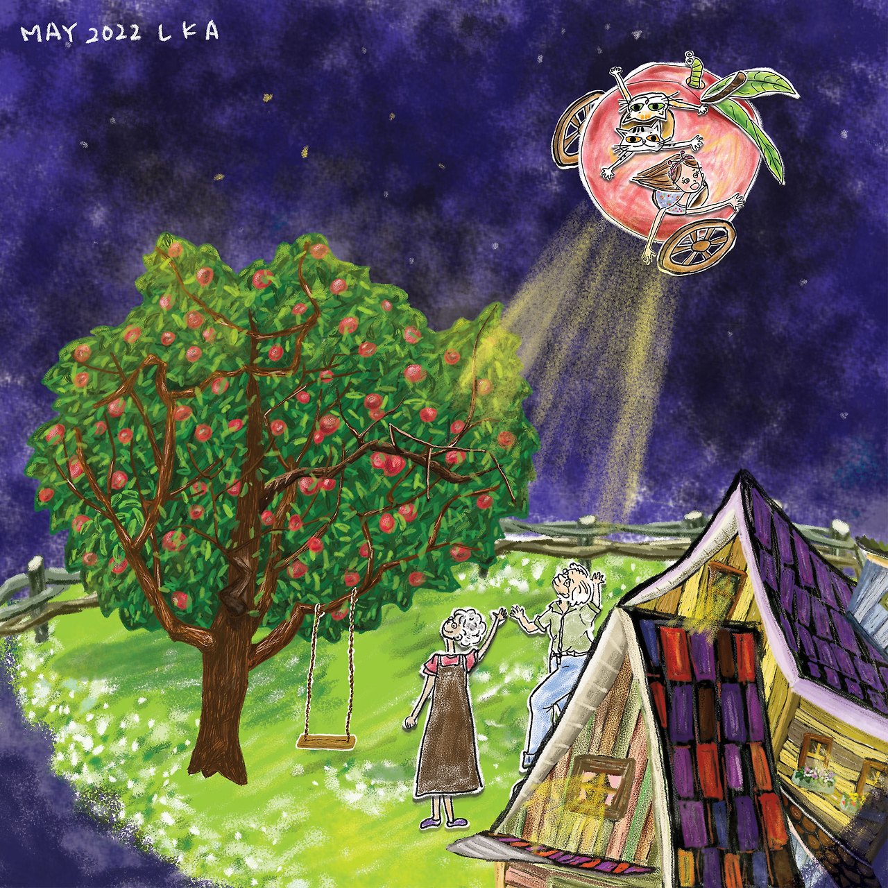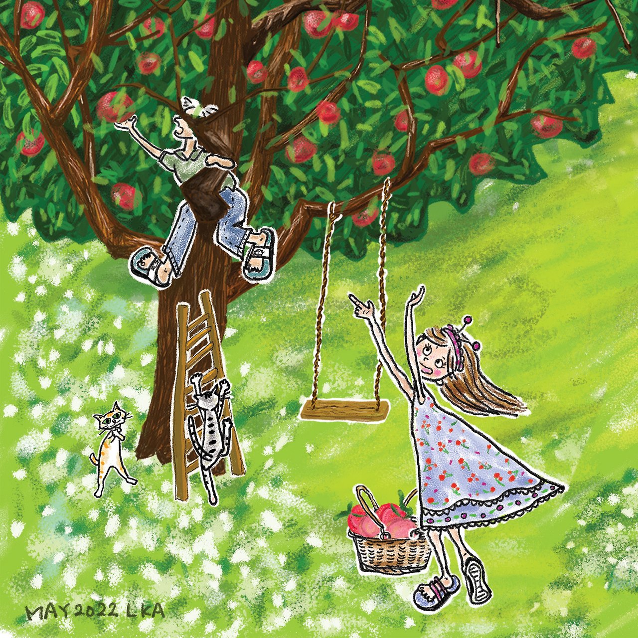 그림 속의 나무는 오랜 시간을 살아온 아주 커다란 복숭아나무다. 나무에 그네도 매달 거야. 신난다.