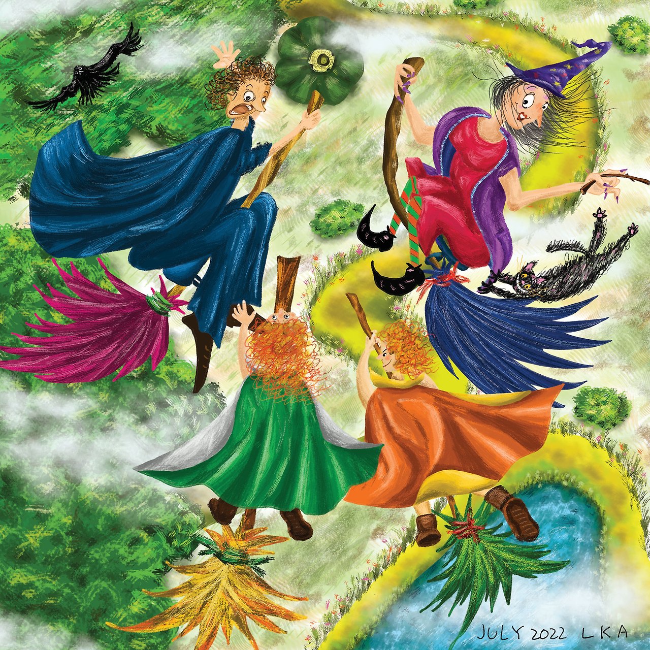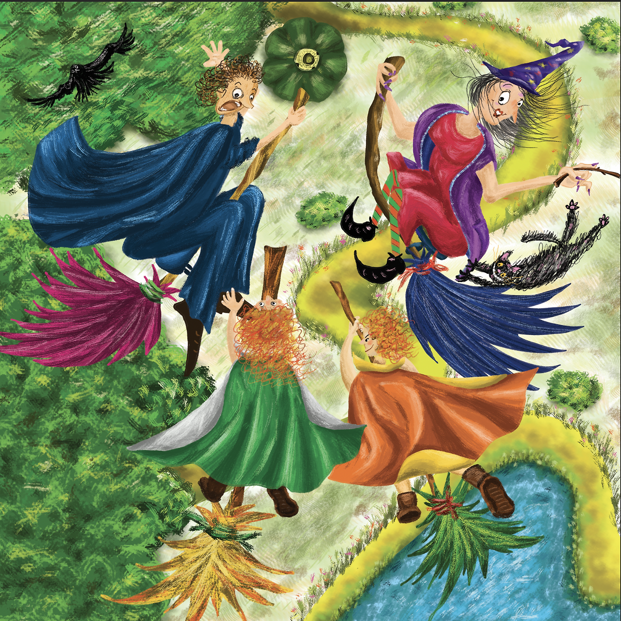 우와~ 높이높이 날아올랐다. 숲이 보이고 호수가 보이고 집으로 가는 오솔길도 보인다.