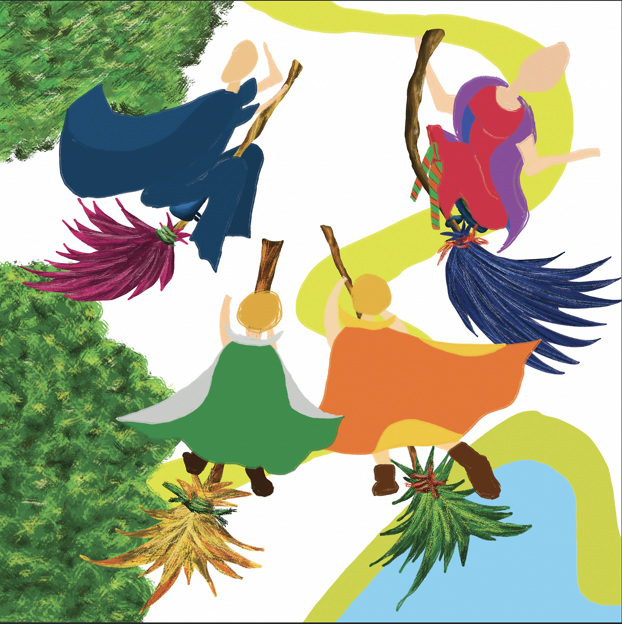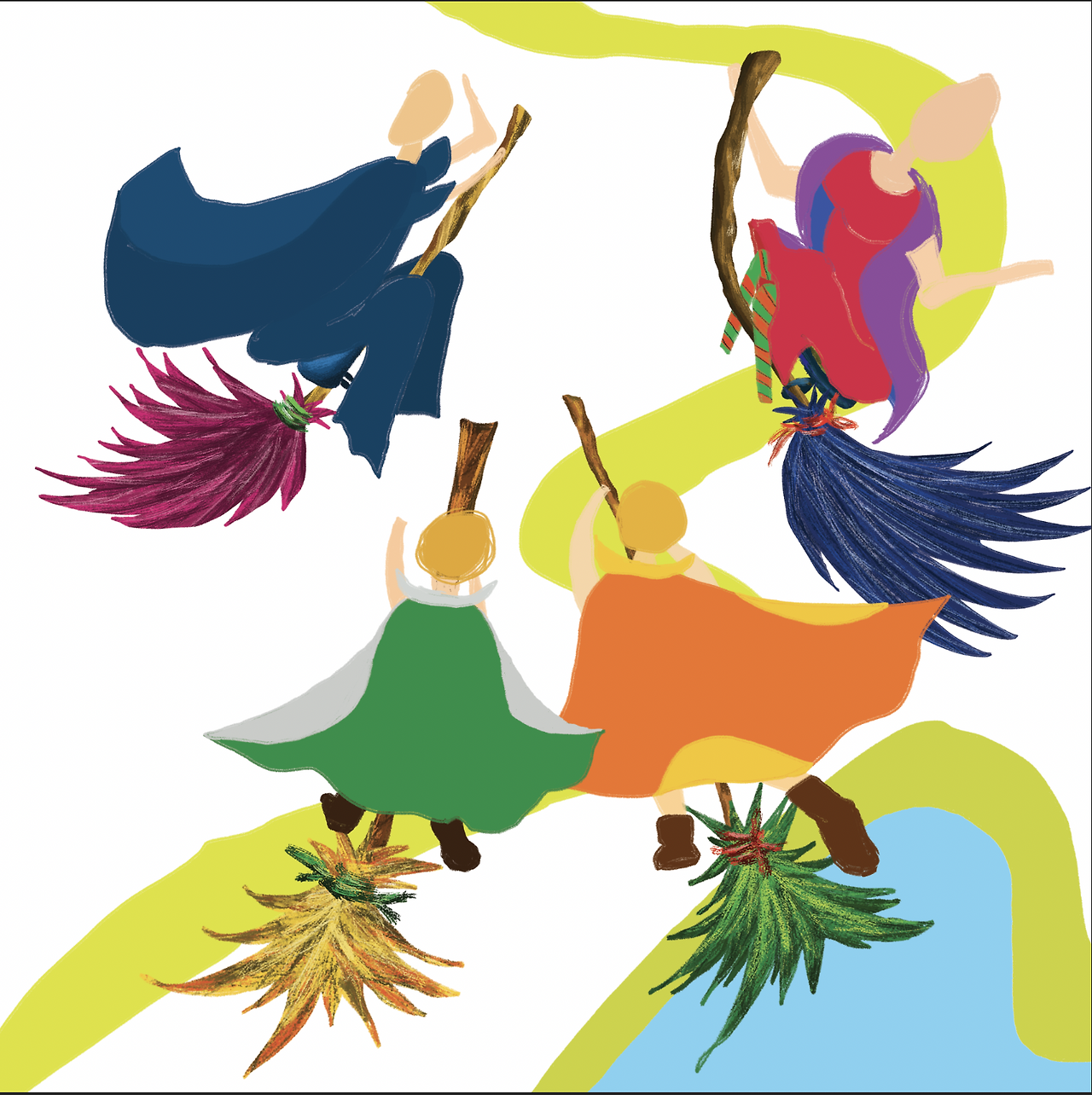 빗자루가 하나, 둘, 셋, 넷.