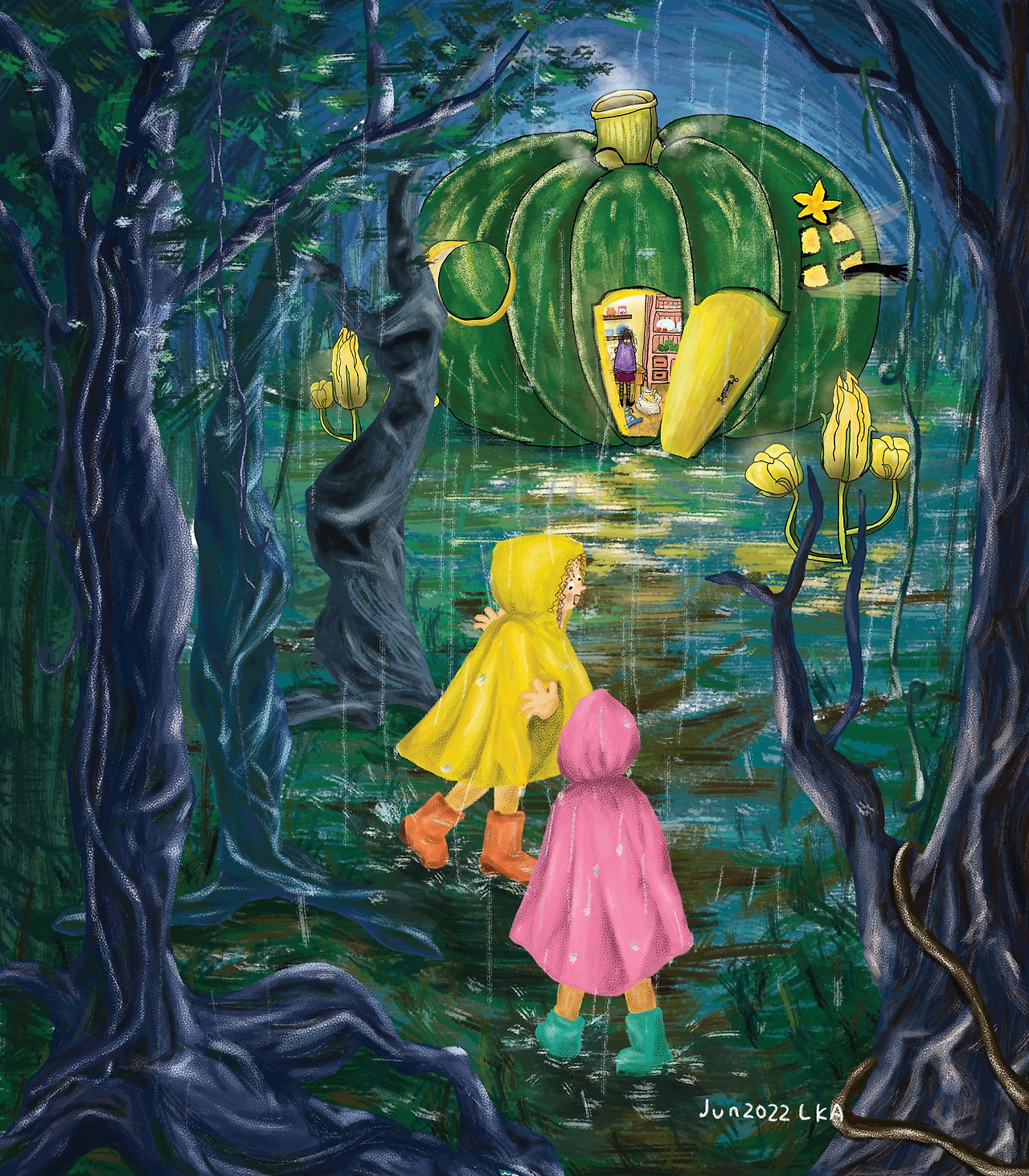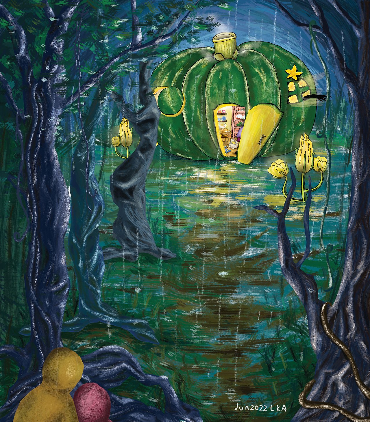 초록색 호박 모양의 집 안엔 누군가 있어요.