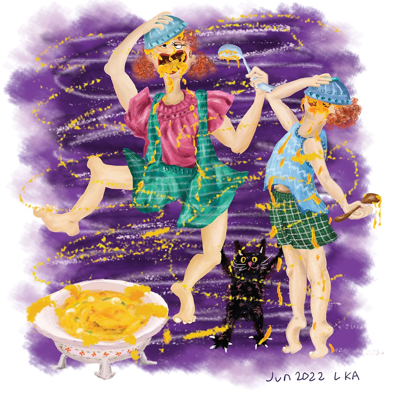 지니와 위니가 여기저기 흘린 호박 수프도 닦아내고