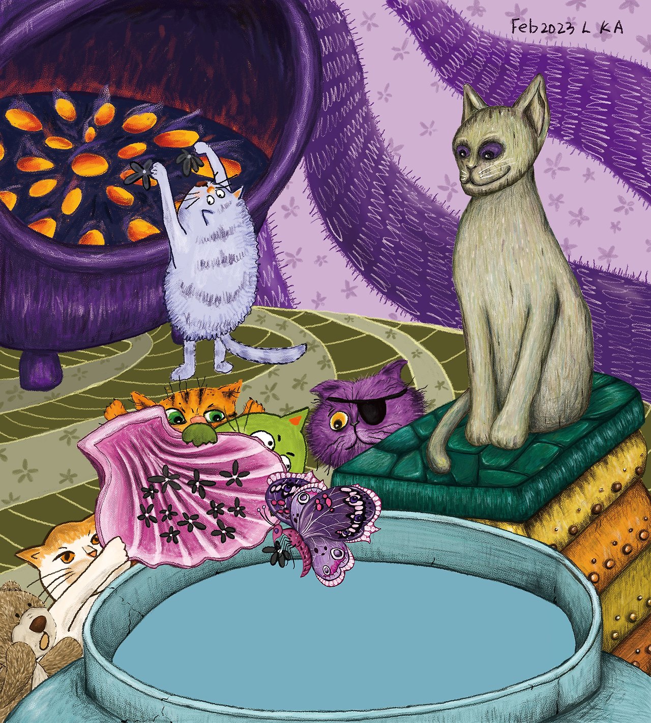 엄마는 집 마당으로 찾아오는 고양이들에게