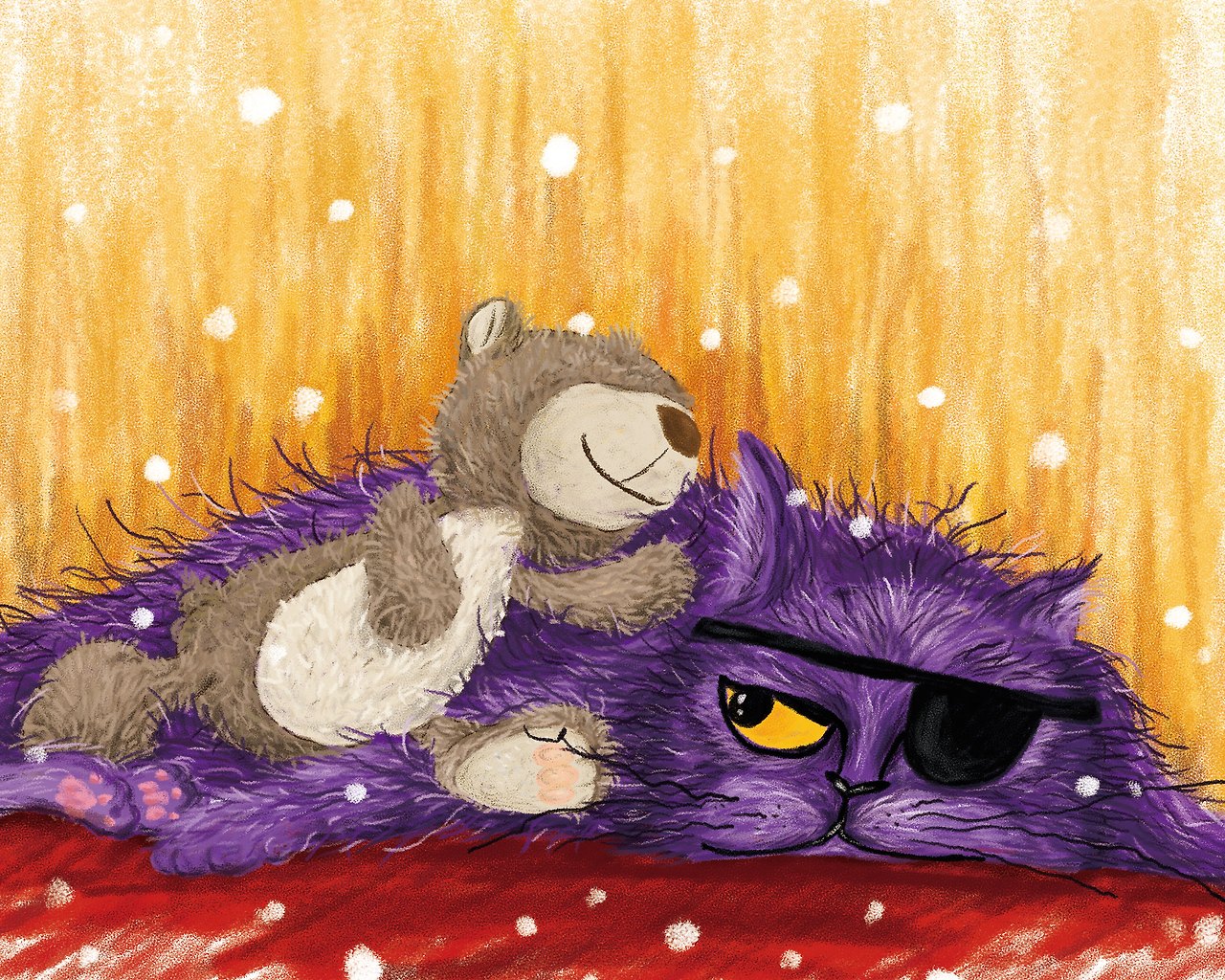 졸린 팔을 뻗어 내 고양이의 엉덩이를 두드린다.